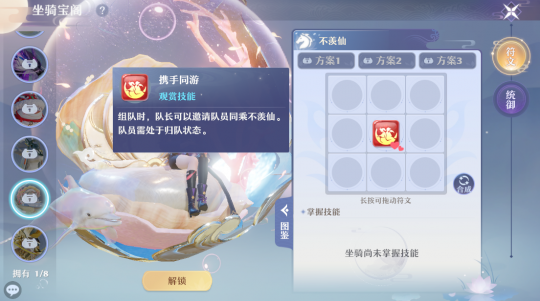 《梦幻新诛仙》首个「双人坐骑·不羡仙」解锁,谁能顶得住一个这么浪漫的双人坐骑,答案当然是:没有人!为了能和心爱的TA同乘看风景,很多玩家早已翻满花牌,为的就是第一时间拿到坐骑~ 对于风景党、外观党玩家来说,在游戏中最向往的事情,恐怕并不是通关难度本夺得珍稀宝物,也不是运筹帷幄成为天命之子,而是找一个情缘结婚,游历四方踏遍神州大地。 所谓“得成比目何辞死,愿作鸳鸯不羡仙”,我们都说千金易得,知己难求,如果能在游戏中寻觅到一位相知相识的红颜知己,那就真的是:天涯海角同遨游,比翼双栖不羡仙! 一、外观设计 「双人坐骑·不羡仙」是仙盟能工巧匠用天地灵气幻化建造的,所以可以看到,外观上有一种超然物外,仙气飘飘的美感。设计思路上,美工结合了珍珠、贝壳、珊瑚、海豚、泡泡等多种元素,打造出了这样一个巨大珍珠蚌为底座,透明粉红泡泡为外壳的梦幻坐骑! 「双人坐骑·不羡仙」动态效果展示 原本笔者也以为这只是设计效果,没想到实装到游戏中,情侣骑乘,漂浮前行,海豚游弋,还有泡泡拖尾特效,璀璨夺目,引人惊叹,难怪有那么多玩家跃跃欲试,誓要拿下“不羡仙”去告别女神~ 二、坐骑技能 双人坐骑的核心技能“携手同游”,不同于其他单人坐骑,它是一个观赏技能,组队时队长可以邀请队员同乘,不过队员需要处于归队状态。 虽然这个技能,看起来对实战没有任何帮助,但是跑图撩妹必备,而且前面我们也说到了,不羡仙外观设计非常独特,绝对具有一定的收藏价值。 这里需要提醒大家的是,“携手同游”可以邀请一起同乘的对象,是不限制性别和好友关系的,只要你们双方组队就行了。拥有这样一个坐骑之后,日常组队受欢迎程度肯定MAX,试问谁不想找一个这样的大佬当队友呢? 至于坐骑符文方面,大家可以参考其他坐骑的方案,比如玄雷影、逍遥游、御清风属于输出型坐骑,比较适合PVE,统御群攻类技能的灵兽宝宝;寒烟雪、影噬、福满兜属于辅助型坐骑,在战斗中起到增益回复效果,适合PVP阵容。 三、获取方式 接下来就是重头戏了!我们具体介绍了「双人坐骑·不羡仙」,相信大家更加迫不及待想要入手了,那怎样才能获得呢? 很简单,就是通过《梦幻新诛仙》3月10日最新推出的百花坊活动,人人都有机会获得。 「百花坊」是花朝节其中一个活动,活动时间是2022年3月10日7点—3月23日24点,翻开花牌出现相同道具,即可获得该奖励,有点像“消消乐”玩法。 活动期间,每天都有一个新的花牌页面,每个花牌页面共有32张花牌,包含16个道具,每个花牌翻开后对应一个奖励图案,翻出两个相同图案,则获得对应道具奖励。 而翻牌的次数,首先每天登陆游戏可以获取1次免费次数,然后每次获得30战令经验,获得1次免费次数,最多可以获得6次,每天免费翻盘最多7次。 当然,有一定投资的玩家,可以使用银两或者元宝购买额外的翻盘次数,前7次消耗8000银两或者40元宝,这也就是说,大部分玩家每天最多有14次翻盘机会。 在百花坊活动期间,14天一共最多可以获得32个「双人坐骑·不羡仙」残魂碎片,只需要集齐其中30个,就可以兑换「双人坐骑·不羡仙」了。 有些玩家可能会开始计算概率问题,每天免费7次翻盘机会拿到手,然后7次消耗银币的也用掉,一共14次翻牌机会,要翻出坐骑碎片,在32张花牌翻14次,一半的几率。 建议尽量在翻出来的花牌周围,上下左右前后一两格翻开,这个“玄学”有一定机会翻中(没有绝对准确,只是有概率)。 另外百花坊有保底设置,每6次翻开花牌未能配对,下一次翻开花牌必然配对,这也就是说,每天保底可以先拿到2个道具。当然,如果运气实在不佳,又特别想要攒齐碎片,那就只能用元宝去把坐骑碎片翻出来了。 小结: 《梦幻新诛仙》首个「双人坐骑·不羡仙」,作为限时活动坐骑,获取方式足够良心,如果决定要入手这个坐骑的玩家,要记得留意活动时间攒齐碎片。与其每天都在世界频道喊CPDD,拥有一只双人坐骑,不是更吸引妹子注意吗?嘿嘿嘿,大家行动起来吧! |