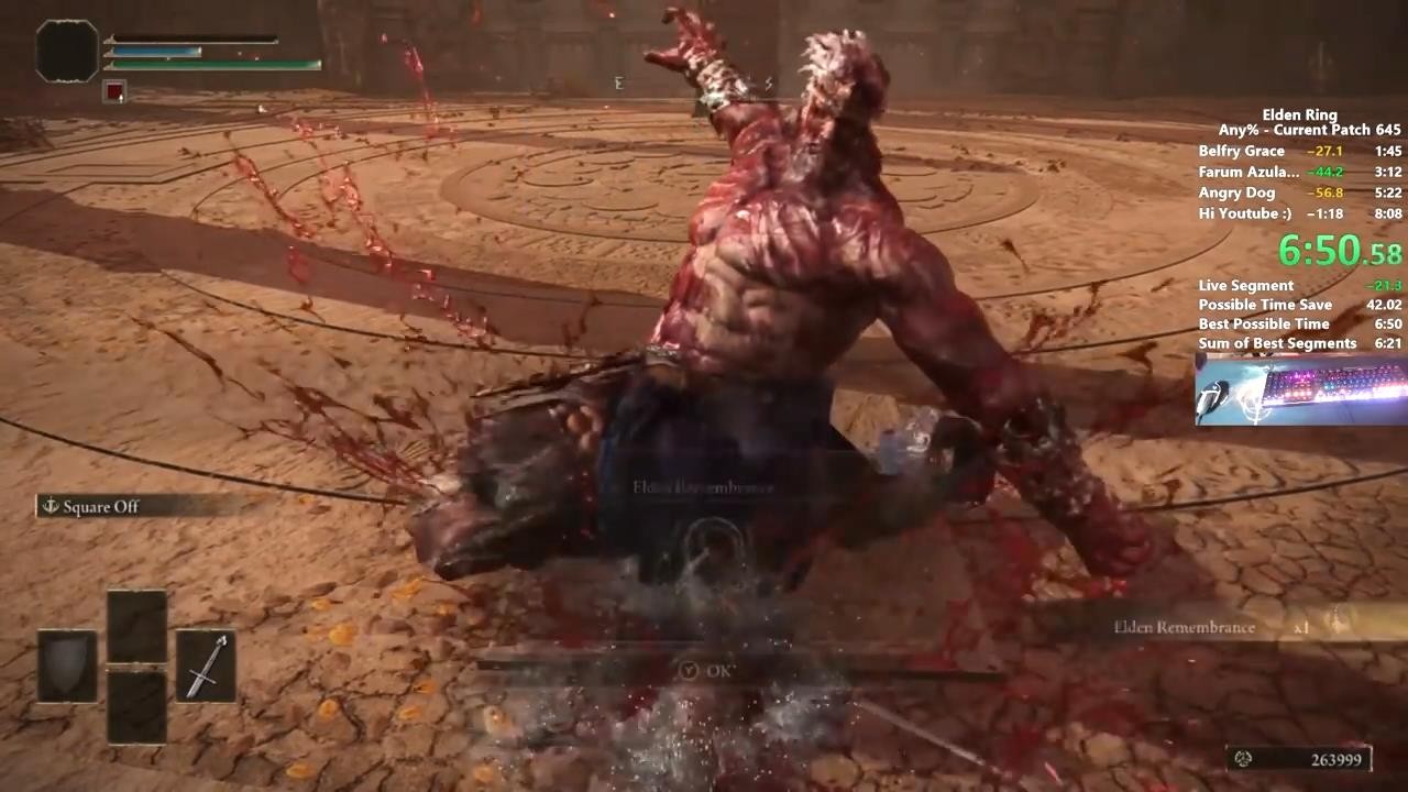 这次Distortion2做好了充足准备,优化了结尾字幕弹出和各种细微过程,减少退出重进游戏的次数,利用大家熟知的漏洞,以极限方式达成速通。视频最后显示他用时7分01秒,但这是因为硬件限制和载入速度所导致,游戏内计时器显示他在7分钟内速通了《艾尔登法环》。