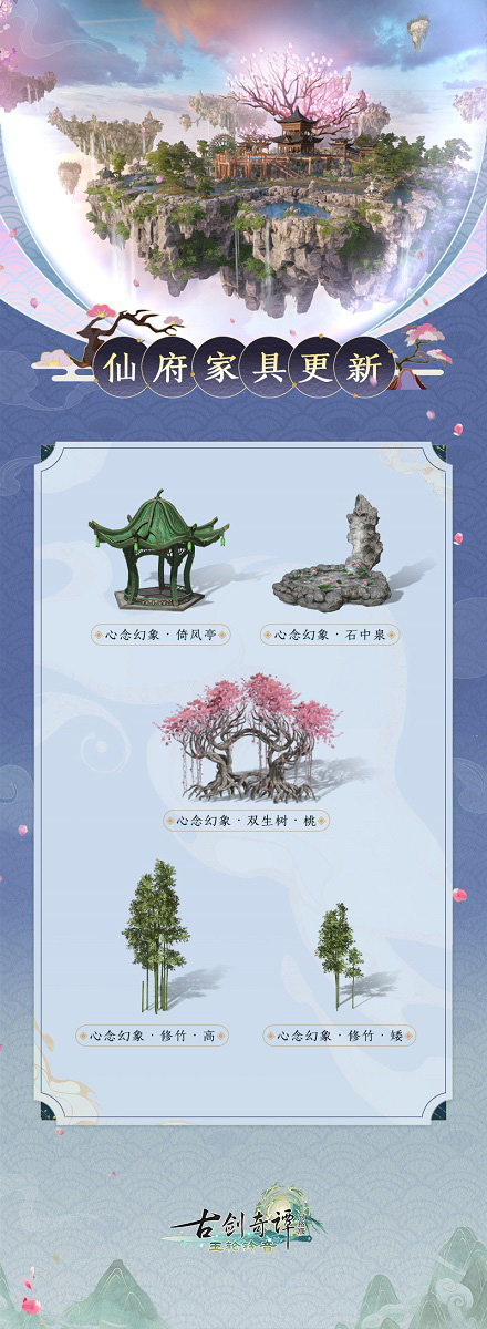 轻松游戏,快乐修仙!国风新仙侠网游《古剑奇谭网络版》玉轮铃音版本暑期资料片【帝首熠兮】将于7月14日上线!主线剧情进一步推进,帝首熠兮,风雨欲来,全新境界助你开启终极试炼!全新野外场景等你探索,诸多全新秘境挑战升级!斗法新赛季开启,全新1v1竞技场开放! 暑期资料片预约现已开启,全新照影、精美挂饰、通宝代金券、尘晶等预约好礼等你领取 即将与大家见面的暑期资料片【帝首熠兮】中,各怀心思的拔剑者们将齐聚一堂,来到【帝剑台】与【造极峰】上,直面帝首剑设下的种种考验,各位仙家弟子们是否已经迫不及待了? 除此之外,全新的野外探索玩法与全新福地【倚剑居】也正等待着仙家弟子们前去游玩体验!让我们一起去看一看吧~ 【全新场景-帝剑台】 帝剑台位处太一天阶尽头,整体由三座浮空岛组成,三岛层层拔高,直入云天,仙气渺渺,而在那高天尽头,就是本次试炼的最终目标——帝首剑的所在之地。 【全新野外探索玩法-法则试炼】 帝首剑灵“兆君”设下规则:在帝剑台上,不论身份过往,相逢即为对手。另取帝首剑意化形,凝意成尊,坐落于帝剑台之上,定下种种法则试炼,若能通过剑意尊设下的试炼,或许能为各位仙家弟子在帝剑台上带来更多便利。 剑意尊为帝首剑剑意所化,敬之畏之,可沐羲皇之泽。 不敬不畏,将受震雷之罚,各位仙家弟子需小心谨慎哦! 礼至心虔,天时地利人和兼至,剑意尊的试炼就会为你而开,胆魄、谋略等缺一不可,期间种种体悟,有待各位仙家弟子们亲往一试。 野外探索玩法优化 在新资料片【帝首熠兮】中,野外区域探索玩法也得到了调优升级: 在全新野外场景帝剑台和造极峰中,随着龙星路域通等级的提升,仙家弟子不断强大的实力将引起仙人们的注意,接受并通过来自他们的试炼挑战。 不同于玉轮仙藏存在的精英怪(每周四、周日刷新的图片怪物),每位仙人的试炼挑战只需完成一次,即可获得丰厚奖励! 【全新福地-倚剑居】 倚剑居地处帝剑台北面,为一座紧邻梅瀑观缘的空中浮岛。岛上风光绮丽,山岩环抱,瀑布清泉自岩眼中涓涓而出,使得岛上水气充盈,奇树异草数不胜数,风过之时,落英纷纷,暗香浮动。闲暇时在岛上放眼远眺,云蒸霞蔚,万千风光尽收眼底。 激活倚剑居福地时,【觅春芳】效果会被同步激活。如若希望关闭或重启该天气效果,可于【剑主遗藏】处操作。 全新福地样式全解锁奖励 装饰设施类: 建筑家具类: 建造区更换地席式样功能上线! 仙府福地建造区更换地席功能正式上线!不管是枕剑仙乡·卧云,还是福地区域,均已实装该功能。只需在枕剑仙乡·卧云【研究制造台】或福地【剑主遗藏】处,通过研究制造界面进行地席式样更换。 后续地席样式可以通过使用地席类家具道具解锁。为庆祝全新功能上线,【地席·如茵】【地席·青晶】【地席·冰花玉】三个地席式样将直接解锁赠送给各位仙家弟子。 |