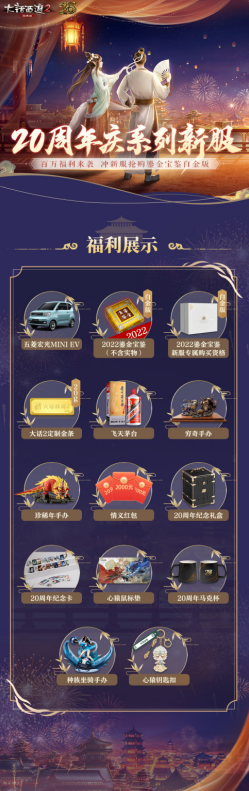 为庆祝大话西游二十周年,与所有的玩家共享二十周年喜悦,“天女散花”即将再现大话,众多六艺神兽、珍稀神兽、五常神兽前来助阵,只为圆你二十年神兽梦。此外,8月19日中午12:00,《大话西游2经典版》同步开启二十周年庆系列新服【天女散花】。8月15日12:00起,侠士们便能够进入游戏,在新服中预约创建角色。 二十周年新服【天女散花】同样开启“盛世20周年”活动,百万福利重磅上线!参与新服活动,有机会抽取五菱宏光MINI EV、大话2定制金条20g、飞天茅台、穷奇手办、2000元情义红包、20周年纪念礼盒等实物奖励,更有概率获得2022鎏金宝鉴白金版新服专属购买资格和2022鎏金宝鉴白金版(不含实物)。 一. 结缘神兽,畅游江湖 ① 天女散花 8月20日下午14:00-17:00期间,30级以上的玩家只要时间宠满足10级,在线每5分钟即可获得一次奖励,六艺神兽、珍稀神兽、五常神兽、藕丝步云履、枯骨刀、珍稀神兽碎片、神兽碎片、终极技能修炼丹等等应有尽有,奖励让你拿到手软! 除了当天180分钟的掉宝大狂欢外,8月20日下午14:00-17:00期间可在家里寻找仙女为大话祝福,有几率领悟召唤兽技能,若领悟技能必定是高级技能或修炼中的终极修炼技能! ②步步为赢 开服前24周只要达成“步步为赢”活动的6次冲级目标,就能领取对应礼包,奖励包含:宝石精华、师门贡献、召唤兽高级技能、天演策修炼点、作坊秘籍、经验等。 ③名动三界 开服第5周凡达到2转120级的玩家,都有几率获得五常神兽、鎏金宝鉴召唤兽、龙涎丸召唤兽!此外,每有1000个玩家达到3转102级、500个玩家达到3转143级,还都会增加一只鎏金宝鉴召唤兽投放,让大家闯荡江湖能有更多助力! 二. 成长助力,闯荡无忧 ①专属活动 开服前24天,参与新服专属活动“盛世20周年”,每日完成小鬼任务、天庭任务、鬼王任务、修罗任务有概率获得祈福石,使用后概率获得盛世积分。可抽取五菱宏光MINI EV、大话2定制金条20g、飞天茅台、穷奇手办、2000元情义现金红包、20周年纪念礼盒等实物奖励,更有概率获得2022鎏金宝鉴白金版新服专属购买资格和2022鎏金宝鉴白金版(不含实物)。 注: ①新服专属购买资格,即用11680多宝仙玉购买购买2022鎏金宝鉴白金版(包含实物),此为新服特殊福利,与全服鎏金宝鉴限购数量无关。 ②累计抽奖40次必定获得新服专属购买资格,数量有限,给完即止,活动期间每个玩家通过抽奖只能得到1次新服专属购买资格。 ② 回归活动 老友回归,使用原有账号在二十周年庆新服(上述3个新服均可)创建角色,活动期间满足对应条件既能获得祈福石、舒筋理气丸、孔明灯,其中使用祈福石有概率获得2022鎏金宝鉴白金版(不含实物)。 ③ 新手礼包 玩家未转10级-2转82级,每隔10级(2转82级最后一次)打开历练锦囊即可获得各种奖励。奖励包含经验、物品、师门贡献、未转玩家法术熟练度。 ④预约礼包 在预约期间可登录并选择牛刀小试、纵横江湖和叱咤三界三个不同级别预约礼包,完成预约即可在开服后于游戏内领取多重奖励。牛刀小试预约,可享受二级排队特权。纵横江湖、叱咤三界预约,则将增加更高级的排队特权,助你上线快人一步,闯荡江湖畅行无忧!更有时装/特效抵扣券、海量大话币和师门贡献、灵兔绒等丰厚奖励等你来领! 除了常规购买渠道,8月15日12:00开启预约后,各位少侠更可以通过礼包页(超链https://xy2.163.com/pay/)登录游戏账号,便捷购买特权礼包。 ⑤等级礼包 新服活动期间,只要等级达到2转120级,就能获得等级礼包,有几率获得鎏金宝鉴宝宝、龙涎丸宝宝、一级神兵、悔梦石、神兵石、龙之骨、筋骨提气丸、终极技能修炼丹等奖励。 注:获得2022新服专属鎏金宝鉴购买资格后,直接扣除仙玉可获得虚拟道具,寄送实物;获得的20222鎏金宝鉴白金版(不含实物)只发放相关虚拟道具,不含实物。 新服专属,超值壕礼 ①新服福运礼包 新服开服第2~12周,新服福运袋子(每周数量有限),使用后可获得福运,可找福星兑换福运礼物。 ②新服好运礼盒 购买新服好运礼盒可固定得到5点活力,另外将免费赠送游戏内道具新服好运宝珠,还可免费参与每周周六、周日(活动期内)的鎏金宝鉴召唤兽、好运时装大抽奖活动。 《大话西游2经典版》,国风经典,亿万口碑扛鼎之作!官网:http://xy2.163.com/ 《大话西游2免费版》,绿色免费,轻松赚钱,经典再临!官网:http://dh2.163.com/ 《大话西游2口袋版》,满分经典,指尖还原!官网:http://xy2.163.com/koudai/ |