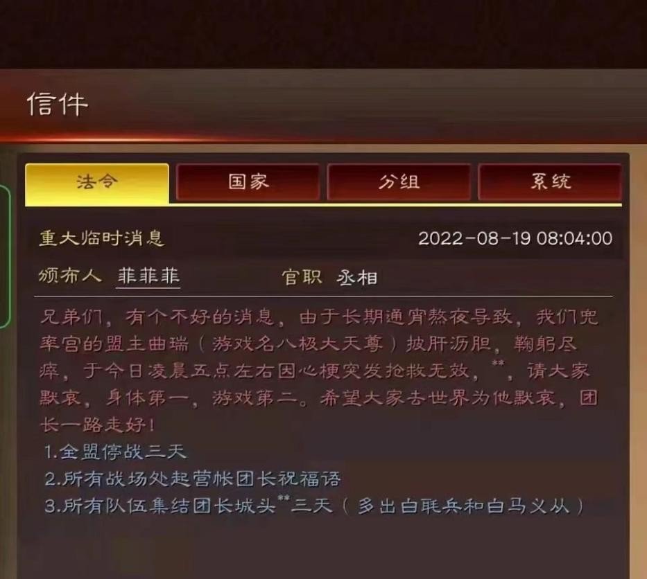 三国志战略版玩家朋友圈发讣告装猝死 趁对手松懈摇人偷家