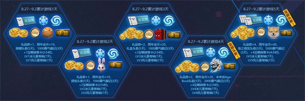 逆战十周年庆典现已迎来最强终章,与逆启航解锁海量大奖,?动态炫彩手环、4星神器日月生辉,十周年限定礼盒0元抽,还有好运锦鲤双刀等你领,更有众多稀有道具倾情放送,NZer们快和安琪儿一起了解下吧~ 装备锦鲤好运来临 在8月23日至8月30日期间,累计游戏天数,可以领取海量宝箱。 8月23日至8月30日累计游戏1天,领礼品券×1、好运锦鲤双刀(1天)、猎场普通宝箱×2、猎场专属宝箱×2。 8月23日至8月30日累计游戏2天,可获得审判之刃补给箱×1、好运锦鲤双刀(2天)、猎场普通宝箱×4、猎场专属宝箱×4。 8月23日至8月30日累计游戏3天,可获得宝物券×1、好运锦鲤双刀(3天)、猎场普通宝箱×6、猎场专属宝箱×6。 8月23日至8月30日累计游戏4天,可获得M107-混沌补给箱×1、好运锦鲤双刀(4天)、猎场普通宝箱×8、猎场专属宝箱×8。 8月23日至8月30日累计游戏5天,可获得离震双法补给箱×1、好运锦鲤双刀、猎场普通宝箱×10、猎场专属宝箱×10。 以上活动宝箱,可以在游戏内活动中心领取,海量宝箱每天抽不停,猎场金光亮晶晶! 免费10连唤金光 在8月27日至9月2日期间,累计游戏天数,可以领取最多5种礼包,内含多款头套,还有2款全新头套等你领。 8月27日至9月2日累计游戏1天,领礼品券×1、周年金币×10、滑稽头套(5天)、1000勇气徽记(3天)、+1宝箱掉落卡(2小时)、LV1冰元素卷轴(7天)、LV1风元素卷轴(7天)。 8月27日至9月2日累计游戏2天,可获得礼品券×1、周年金币×10、顽兔头套(5天)、1000勇气徽记(3天)、+2宝箱掉落卡(2小时)、LV2冰元素卷轴(7天)、LV2风元素卷轴(7天)。 8月27日至9月2日累计游戏3天,可直接领取礼品券×2、周年金币×20、礼盒头套(5天)、1000勇气徽记(3天)、+2宝箱掉落卡(2小时)、LV3冰元素卷轴(7天)、LV3风元素卷轴(7天)。 8月27日至9月2日累计游戏4天,礼品券×2、周年金币×20、全新未来世Age-Boot头盔(5天)、2000勇气徽记(3天)、+4宝箱掉落卡(2小时)、LV4冰元素卷轴(7天)、LV4风元素卷轴(7天)等你拿。 8月27日至9月2日累计游戏5天,礼品券×4、周年金币×40、全新柴之微笑头套(5天)、5000勇气徽记(3天)、+4宝箱掉落卡(4小时)、LV5冰元素卷轴(7天)、LV5风元素卷轴(7天) 全部10连礼品券,宝箱加成卡、还有首次出现的未来世Age-Boot头盔、柴之微笑头套,以及LV1-5级元素卷轴,这么多的福利,只要8月27日至9月2日累计游戏,就可以领取,千万别错过啦! 点亮虹桥领炫彩动态手环 在8月23日至9月12日的活动期间内,通过完成任务,点亮虹桥,即可免费获取炫彩动态周年手环。 完成10波任务:登录游戏1天、游戏时长60分钟、完成10局猎场、登录游戏5天、游戏时长240分钟、登录游戏8天、完成10局爆破或团竞、登录游戏10天、游戏时长480分钟、完成10局塔防,即可点亮所有虹桥。 若拥有启程新纪元手环1、2、4、8、10个可各减少1个任务! 如果你点亮两条虹桥,还可解锁周年专属信息卡。 探索印记领最强终章福利 在8月23日至9月12日活动期间内,通过完成任务领取勋章,通过勋章解锁印记,即可解除区域限制,共含10个区域(2个相同图案为一个区域)。 安琪儿悄悄告诉你,解除区域限制,还有神秘奖励等你来领! 解锁3个区域,可获得高爆手雷10选1 解锁7个区域,可获得1000NZ点购物券。 解锁10个区域,可获得拥有专属词条的4星神器日月生辉,还可解锁神秘打卡模块,领取更多奖励~ 每解锁一块区域,还可免费抽取一次价值328元的十周年定制礼盒,仅限量20份! 想要获得勋章,仅需要完成每日任务:每日登录游戏、每日完成一局激斗塔防、每日游戏30min、完成两个每日任务即可获得勋章。 领最强终章福利,解锁专属词条武器,安琪儿邀请你前往! 终章金币加油站开启 在8月23日至9月12日活动期间,还有十周年金币加油站,为你开启。 在金币中转站,各位NZer完成每日游戏2min,即可向他人赠送10周年金币×1,接受者当日需完成同等游戏时长,才可成功接受赠送,每日最高赠送20枚金币,次日0点重置赠送/接收资格,活动期间最多可接受200金币,赠送金币则无限制,金币中转站仅限相同大区玩家进行。 而在金币加速站,只要每日游戏3min可得金币×1,每日最多获取30枚,也就是90分钟游戏时间,活动期间最多可得600金币,每日限领取10周年金币1次。金币加速站仅限8月23日前未获得任何周年商城金币道具,且金币存量少于100枚的玩家参与。 随着十周年最强终章活动登场,还未领取全十周年庆典福利的NZer,记得抓紧时间参与活动呦! |