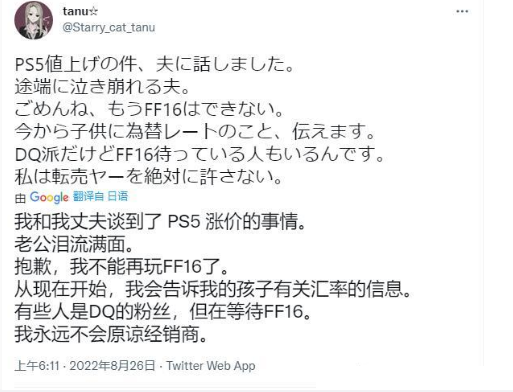 昨日。索尼宣布:“出于国际经济环境、通货膨胀以及汇率因素的影响,即日起将调整PS5在部分地区的价格。” 但话虽然如此,但实际上受到影响的,却是除美国外的其他地区集体涨价。国行的涨价幅度最高,普通版和数字版都加价400元。即使索尼承诺,未来将继续加大对PS5的供给,确保每一个想要购买PS5的玩家都有机会买到一台PS5。可玩家们的情绪,并未因此受到安抚。 而在今天上午,央视财经频道也报道了这件事。不过跟索尼官方发布的公告中,所描述的PS5涨价是因通货膨胀所致不同。央视财经频道在资讯中表示: “索尼选择的这一涨价时机,正值主要竞争对手任天堂、微软等游戏公司陷入低迷之际。此次调价覆盖面很大,除了美国市场,其中,欧洲和中国市场上调幅度最大。” 更认可哪种说法,大伙都有自己的判断,但不管怎么说,受到PS5涨价影响最大的终归还是玩家。日本玩家对PS5涨价的反应,就尤为激烈,当前日本地区的推特热搜,就出现了#FF16#的词条。 《FF16》也就是《最终幻想16》,是一款备受玩家们期待的大作。按照官方通报的消息,这款游戏将于2023年夏季发售并登陆PS5平台。甚至于许多玩家决意购买PS5,就是为了能在第一时间玩到《最终幻想16》。 但此番PS5的涨价,却让不少还没有入手设备的玩家感到“绝望”。这些人都在网上呼吁《最终幻想16》推出PC版本、Steam版本,这样他们就不用购买PS5了。更有玩家描述起自己的艰难处境时,近乎声泪俱下。 而这无疑是对“不买立省100%”的另一种诠释。 不过事先宣传的独占游戏,过后却登陆PC也算是索尼的传统艺能了。《战神4》、《漫威蜘蛛侠》,这些曾打出“only on playstation”口号的独占游戏,最终不也摆上了Steam的货架。日本玩家呼吁《最终幻想16》同步发布于PC,只能算是跳过中间步骤。 涨价后再回调,这在之前几乎是没有先例的。或许只有等到足够多数量的大作在PS5上独占,才能让更多玩家心甘情愿入手主机吧。 那么经此一事之后,大家还有入手PS5的打算吗? |