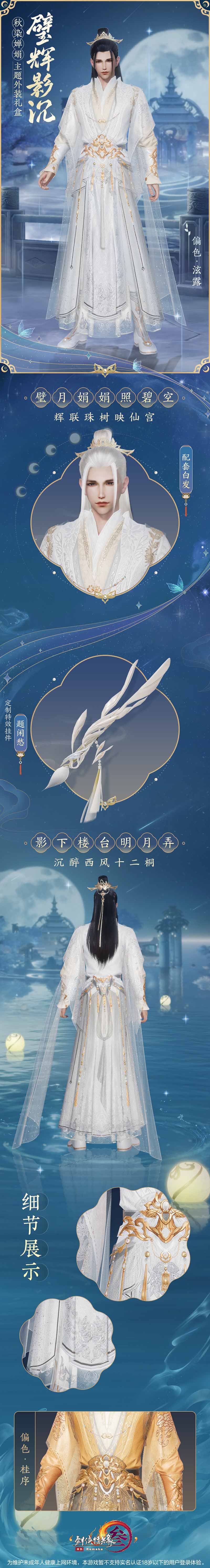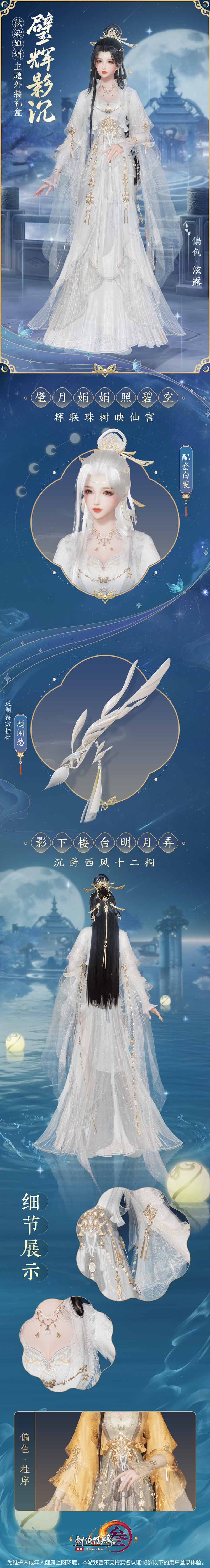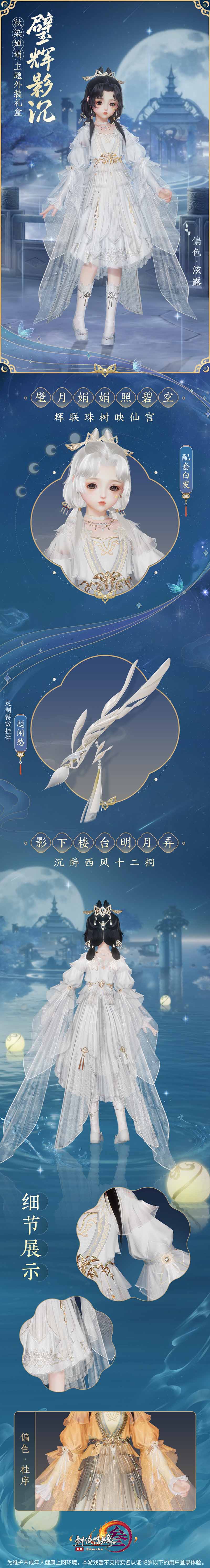 月满西楼,清辉未央,《剑网3》秋染婵娟外装礼盒“璧辉影沉”和二创复刻外装“箜篌踏歌”今日震撼登场!或与月共酌,举杯相邀,欣赏佳节美景;或如潜海底,踏歌而戏,享受别样风情!诸多美妙,我们一起来看! 【皓月渐满 仙桂留影 “璧辉影沉”外装礼盒优雅而来】 天上自来仙桂影,如月若幻满香沁,“璧辉影沉”外装礼盒整体突出明月的皎洁之感,款式华美典雅,不染纤尘,尽展清丽古典之美。成男款气质翩翩,一袭长衫君子如玉,束袖利落器宇不凡,精美金饰缀于周身,腰间襟带掩映,潇洒俊逸而又不失尊贵。成女款式典雅,轻纱细致描绘秋菊纹案,好似漫天清辉洒落蕊间;颈前以金环与白玉做点缀,祥瑞泠泠,温婉大气。萝莉款短裙更添轻盈活力,薄纱成袖,举手投足间袖尾随风摆动,腰间层叠相束再展,婉约柔美扑面而来,裙摆亦有银丝绣菊,仙韵十足。正太款素白底衫配鎏金装饰,秋菊暗纹与流金交映,双襟飘带相扣于胸,落落大方,层层作缀,尽显挺拔高洁之气。 此外,以广寒仙子嫦娥为主题打造的秋染婵娟外装礼盒“璧辉影沉”共有两款不同偏色供君挑选。“泫露”偏色似月之清辉,素雅矜然。而偏色“桂序”以玄黄二色为主,深浅错落极富秋意,有如暗香浮动引人入胜。开启服饰三段特效后,抬手唤月,清辉绕身,飘然间飞入圆月幻影,万千星漪尽收指尖。月下雅兴何不挥毫写就,礼盒内附专属毛笔款式特效背部挂件“题闲愁”,“泫露”偏色的笔墨颜色为银灰色,“桂序”偏色的笔墨颜色为桂黄色,均可调节笔触大小。使用则能手持玉笔,在江湖各处留下你的巧涂妙句! 秋染婵娟主题外装礼盒“璧辉影沉”将于9月8日上架商城,详情如下: 共有2种偏色可供选购。 礼盒内含(布料2.0特效成衣+绑定款定制黑发+定制白发+毛笔款式特效背部挂件“题闲愁”) 不绑定款:9月8日20:05限量上架15,000份,售价52,000通宝,不可使用折扣券。 绑定款:9月8日20:20至10月13日7:00限时上架,售价52,000通宝,不可使用折扣券。 【深海幻美 二创复刻外装“箜篌踏歌”新颖来袭】 复刻外装“箜篌踏歌”在原有经典款式基础上融合了诸多时尚元素进行大胆创新,“阆海”与“檀霞”两款不同偏色各有千秋,顾深海幻美如画,细数其中粼粼波光,乘浪而望天地浩瀚。成男款衣襟设计如浪绕身,暗纹似鳍,身姿灵动,更添神秘不羁之感!成女款颈间以贝壳珍珠装饰,衣摆有晶莹气泡蜿蜒而上,遥相呼应婀娜多姿,顾盼神飞见之忘俗。萝莉款短裙轻盈俏丽,不对称的单侧系肩和脚踝系带巧思独具,裙袖设计更带来焕然一新的全新观感,小巧的蝴蝶结和贝壳铺洒其上,可爱无比!正太款衣着清爽大方,鱼鳞纹路挥洒自然,在光线映射下更加凸显绚丽非凡! 二创复刻外装“箜篌踏歌”将于9月8日上架商城,详情如下: 共有2款偏色可供选购。 上架详情:9月8日7:00至10月13日7:00限时上架,售价20,000通宝,为不绑定款,不可使用折扣券。 玉桂满缀今宵梦,清辉遍处照相思,《剑网3》与你相约花好月圆中秋佳节!后续还有更多惊喜新品爆料陆续登场,敬请期待! |