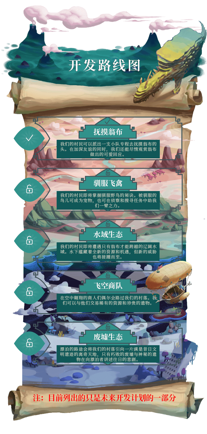 《漂泊牧歌》发布了新公告宣布游戏发售前2天已售出5万份,当前Steam好评率为89%,并发布了未来的更新路线图。目前开发者已经在着手制作首个小更新,将修复玩家反馈的一些Bug,并添加切换鼠标主要和次要按钮的设置功能,为习惯左手使用鼠标的玩家提供便利。 除此之外,开发者还表示《漂泊牧歌》是一款正处于并且之后的很长一段时间都会处于抢先体验,当前所玩到的版本将不会是游戏的最终形态,任何的问题或建议都可能会在后续的更新中进行修正。 已经确定会加入的功能: 新的生态- 水域生态 新的生态- 废墟生态 新的地点和事件 新的建筑 驯服飞禽 飞空商队 翁布皮肤 手柄支持 Steam Deck 支持 Xbox 版本 开发者想要改进的内容: 更多故事内容 全新的和改善后的翁布互动内容 更多城市建设机制 更好的村民AI 更好的难度平衡 UI交互/更易懂 |