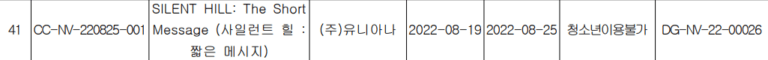 韩国游戏分级与管理委员会今日发布了新一批的游戏过审评级名单,其中《寂静岭》新作《寂静岭:短信》(Silent Hill:The Short Message)出现在这份名单中,页面显示游戏发行商为UNIANA,游戏发售平台与类型等未知。UNIANA为Konami的韩国发行合作伙伴,长期负责在韩国发行Konami游戏。目前科乐美官方未曾公布新作相关消息。 此外,由UNIANA发行的科乐美免费足球游戏《eFootball 2023》,Pyro Studios的《盟军敢死队3高清重制版》以及育碧的《舞力全开2023》等游戏也出现在了今天的韩国游戏评级名单中。 官方页面:点击此处(《寂静岭:短信》游戏评级代码为CC-NV-220825-001) |