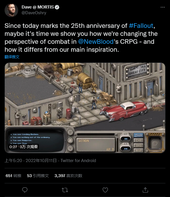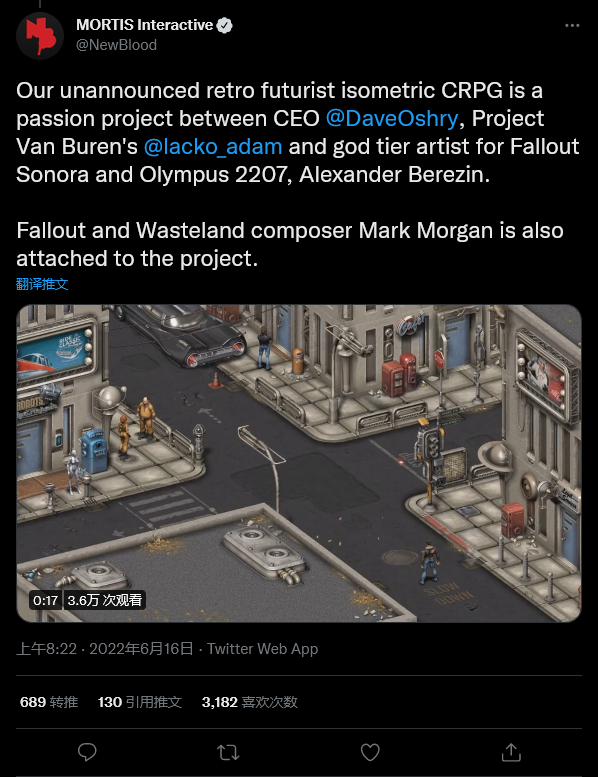 《ULTRAKILL》发行商,致力于发行复古和街机风格游戏的 New Blood 在 6 月宣布了一款全新的 CRPG,并且此前就表示它从原版《辐射》游戏中汲取了大量灵感。该项目开发团队不仅包括两位《辐射》Mod 资深人士,而且还将由原版《辐射》作曲家 Mark Morgan 为其配乐。 这部作品明显是对《辐射》的致敬,但它并不是完全照抄。这款暂未公布名称的作品将至少在战斗上和原版《辐射》有所不同。今天(10 月 11 日)在推特上 New Blood 负责人 Dave Oshry 提供了项目的更新。游戏将在很长时间内不会推出,甚至不会正式公布。 Oshry 说道:“考虑到今天是《辐射》的 25 周年纪念,也许是时候向你们展示我们如何改变 New Blood 的 CRPG 中的战斗时叫,以及它与我们主要的灵感来源(《辐射》)有何不同。”在同条推特中,他发布了一段简短的游戏实机视频。 游戏实机: 从实机中可见,它将包含原版《辐射》所没有的第一人称视角,但它并不是一款射击游戏。游戏最引人注目的是 Alexander “Red888guns” Berezin 的艺术,他曾参与过《辐射:索诺拉》和《奥林匹斯2207》等热门 Mod。 Oshry 继续说道:“当然,对原版《辐射》游戏的最大抱怨一直是回合制战斗的缓慢和笨拙的特点。虽然我们仍然保持回合制,但通过将风格和视角转换成类似经典的地牢爬行者游戏,我们发现它更具吸引力。” 30 秒的实机预览中还能看到其他游戏中的功能,例如经典 CRPG 中一定会包括的自由对话选项,以及玩家的动作日志。用户 UI 看起来夜非常服和 CRPG 90 年代的黄金时代。 可惜的是鉴于游戏目前甚至还没有公开,目前还不知道游戏的具体发售时间计划,并且发售时这些都可能回发生改动。 |