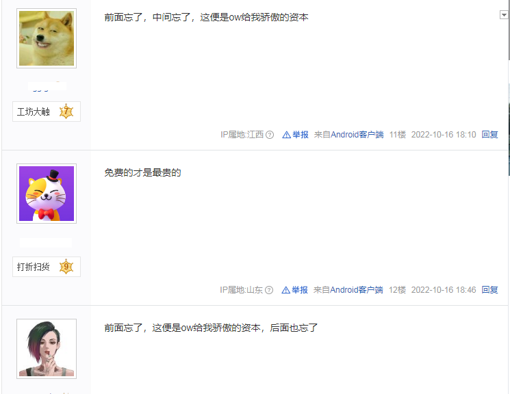 《守望先锋2》现已发布两周,至今依然有不少老玩家将这款游戏与一代相比较。区别于前作,《守望先锋2》不管是在内部的玩法机制上(6V6改为5v5),还是外部的销售模式上(由买断制游戏更改为免费游戏),都产生了极大的变化。 而在近期,Reddit论坛上就有一名网友,通过严谨的计算,得出了一个官方都没有给出过的数据——“一个全皮肤收集的《守望先锋1》账号,在二代中的价值为10226美元。(约合人民币73535.166元)” 这个结论得出的过程,其实完全参考了《守望先锋2》现有的游戏设定的。因为这一代已经移除了前作中靠开箱子获取战利品的方式,按照游戏中的虚拟货币换算,100虚拟金币等于1美元现实货币。 由此可得,《守望先锋1》中的皮肤价值为: 传奇皮肤:254个 482600金币 ;史诗皮肤:138个 138000金币 ; 普通皮肤:127个 38100金币 ; 动作表情:213个 106500金币 ; 胜利姿势:221个 66300金币 ;特写镜头:133个 93100金币 ; 语音:980个 98000金币 总计:1022600金币(10226美元) 这份数据统计结果,让一些老玩家的自豪感油然而生。想想自己曾经持有的价值数万的游戏账号,不禁调侃道:“这便是ow给我骄傲的资本。” 不过在调侃完以后,大伙心中又不免泛起苦涩。总是抑制不住自己的情绪想问问暴雪:《守望先锋2》的英雄、道具获取方式,到底是哪个天才策划想出来的? 上个月《守望先锋2》新英雄雾子的CG短片抢先偷跑,对于这个大眼睛萌妹玩家们评价很高。可紧随其后,暴雪就宣布雾子的获取途径并非直接获取,而是需要玩家们肝通行证,这惹得网上一片怨声载道。 等到《守望先锋2》正式发布后,更准确和细致的计算结果出现了。玩家惊讶地发现,如果在不氪金和没有其他促销活动的情况下,想要获取雾子的全皮肤饰品就得花费15600金币。然而玩家们每周通过各种挑战,最终只能获得60个金币;每个赛季只能获得540个金币。 因此从理论上来说,想要靠肝来达成解锁雾子全皮肤饰品的成就,玩家至少得花费五年时间。在此有必要说一个热知识:《守望先锋1》从上线到下架,总共运营了6年。 曾经的《守望先锋》玩家,不会用游戏中的虚拟货币,来衡量英雄和皮肤的价值。正是有了“5年才能肝完雾子皮肤饰品”的论调,之后才有了玩家用二代的标准,界定一代中游戏账号价值的戏码。 又或者说,《守望先锋》系列的变化,正是对“免费的才是最贵的”这句话的诠释。因为这里面既包括氪金成本,也包括时间成本。 那么大家更认可《守望先锋》原先的买断制玩法,还是现在的免费玩法呢? |