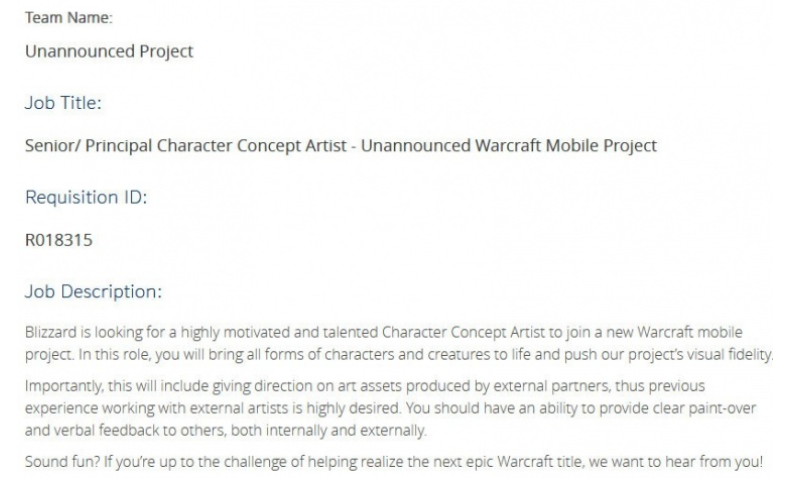 在今年8月初,暴雪曾宣布了与网易联手开发的魔兽手游,因为双方在合作理念上的分歧终止了开发,紧接着又宣布了新一代魔兽手游《弧光大作战》的消息,这让很多老玩家都下意识地认为暴雪再无开发正版MMO手游的雄心壮志。但就在最近,根据暴雪官网的招聘信息显示,暴雪并没有放弃整个魔兽手游项目,正在积极地筹备复活事项。 根据招聘启事的显示,暴雪继续招聘一位有从业经验的高级角色概念美术师,来协助团队研发一项从未公开的魔兽IP移动端项目。这个人的重要职责在于使用由外部合作伙伴制作的美术资产,擅长跟外部美术进行合作与沟通,并有能力去讲内部设计师的角色创作理念,传递给外部合作伙伴,指导他们进行清晰的修改。 从这些信息来看,这显然是继跟网易合作终止之后,暴雪正在清算双方合作过程中的美术资源,给开发正版魔兽手游作准备,隐隐与之前网友爆料的,暴雪将网易方面研发魔兽手游的100人团队取消有关。 (魔兽手游合作终止的消息) 换言之,暴雪确实是在准备复活魔兽手游这个项目,并且有可能找到了新的外部合作伙伴,因此急需一位高级美术来协助他们去进行角色设计上的沟通,以便这个项目可以如期推进。如果我们在结合微软游戏CEO菲尔·斯宾塞,在之前媒体采访中表露“收购暴雪是看中他们做手游能力”的言论来看,显然这一次魔兽手游项目的重启,很有可能是因为微软钞能力的注入,给了暴雪重整旗鼓的信心。 总之,暴雪能把魔兽手游做起来,对玩家来说肯定是一个好消息,只是希望这款游戏能跟暗黑不朽有所差别,不要继续卖宝石了。 |