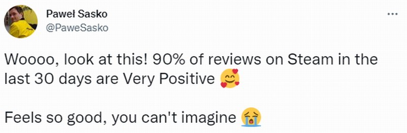 2020年12月《赛博朋克2077》发售之初,因为游戏内容与宣传时有很大出入、优化问题欠佳、不同平台用户体验差距过大等问题,使得开发商CDPR的在玩家心目中的印象分暴跌。许多人自那时起,下定决心今后不会再预购任何游戏。 为了能够挽回这一切,CDPR在接下来的两年进入了漫长的补救工作中。解决游戏BUG、充实游戏内容、改善玩家游戏体验,成为了第一要务。到了今天,《赛博朋克2077》的评价终于有了明显的提升。《赛博朋克2077》任务总监Pawe? Sasko,迫不及待向大家分享了这份喜悦: “哇,看看这个!在过去30天,Steam上90%的评论为好评。感觉太棒了,你根本无法想象!” 很显然,《赛博朋克2077》没有走《巫师》的老路子,靠发布优质DLC来挽回口碑。玩家们也同样清楚,《赛博朋克2077》的口碑回升是因何而起。以至于发出这样的感慨—— 玩家所提到的扳机社,正是《赛博朋克:边缘行者》的制作者。这部上线于9月13日的动漫作品,当前在挑剔的某瓣用户心目中有着9.0的高分。 在《赛博朋克:边缘行者》的带动下,过去的一个月里《赛博朋克2077》迅速翻红。不仅销量数据突破了2000万份,并且每天都有多达10万个玩家回归。虽然这里面不乏看过动漫后跟风的人,但各项数据的增长却是实打实的。 要知道,8月份《赛博朋克2077》的玩家在线人数峰值只有1.8万,可在9月份这项数据翻了数十倍。继2020年首发以来,《赛博朋克2077》又一次在玩家月活上突破了100万。以至于游戏的任务总监Pawe? Sasko,在直播中当场泪奔,感谢玩家们的支持。 那一刻,参与了《赛博朋克2077》的工作人员,想必与Pawe? Sasko的心情是一致的。 不可否认,《赛博朋克:边缘行者》是一款优秀的作品。可要说《赛博朋克2077》的口碑回升,全仰赖这部动漫也不完全对。俗话说得好“打铁还需自身硬”,如果《赛博朋克2077》本身的品质跟最初发布时没区别,玩家对它的印象也不会发生改观。 在两年来的不断更新过程中,《赛博朋克2077》基本消除了前期出现的问题。又或者说,现在的《赛博朋克2077》,就是玩家们最初预想中这款游戏该有的样子。Steam 90%的好评率,给到现在的《赛博朋克2077》并不夸张。 《赛博朋克:边缘行者》的播出所提供的其实是一个契机,它让更多人重新审视起了《赛博朋克2077》。幸运的是,CDPR两年的努力成果经受住了检验。《赛博朋克2077》也能够自豪地说,自己是近些年的最佳开放世界游戏之一。 当然,CDPR的案例是很难复刻的。没有多少公司,会在游戏首发口碑扑街后,依然为其投入大量精力。首发时就为玩家提供一个完成度100%的作品,仍是其他的厂商需要保证的点。 那么大家觉得现在的《赛博朋克2077》,达到自己心目中的要求了吗? |