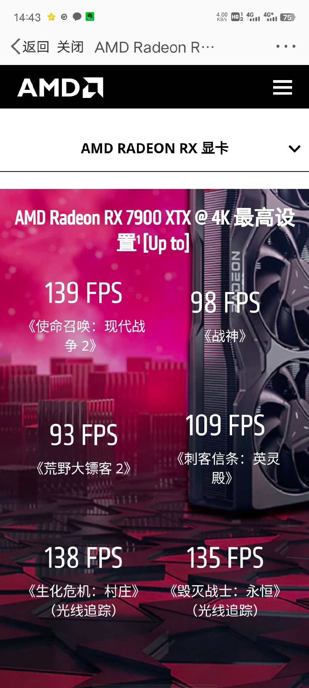 今天凌晨,在全球玩家的期待中AMD发布了最新一代 RX 7900XT(X) 系列显卡。它作为英伟达RTX 40系显卡的对标产品,许多人正是抱着观望态度,才没有第一时间入手RTX 4090。 AMD表示:RX 7900XTX采用完整的Navi 31GPU,配备24GB显存,显存速度为20 Gbps,384bit显存位宽,12288个流处理器,带宽为960GB/S,搭载Infinity Cache高速缓存技术,缓存96MB,TDP是355W。 RX 7900XT发布后,显卡圈大神harukaze5719随即就进行了实机测试,并与RTX 4090的性能进行了对比。以当前几大热门游戏为测试环境,玩家们看过之后想必就能在这两张显卡中做出选择了。 在试玩《赛博朋克2077》时,两款显卡的性能差距还不到1%,基本可以忽略不计。 试玩《看门狗:军团》时,RTX 4090比RX 7900XTX快6.4%。 试玩《使命召唤19:现代战争2》时,RTX 4090比RX 7900XTX快4.4%。 从性能表现上来说,这两款显卡在玩游戏时很难让玩家用肉眼感知出差距。可是在售价上,RTX 4090和RX 7900XTX之间的差价却高达5000元。AMD中国在今天中午发布的公告中提到:RX 7900 XTX国行售价7999元,RX 7900 XT国行售价7399元。 如果单纯只以性价比考虑,AMD确实会是更好的选择。并且前段时间RTX 4090曾发生过多起接口负荷过大烧坏的情况,由于RX 7900 XTX采用的是传统8Pin接口,所以担忧会发生同样问题的玩家大可放心。 2022年对所有显卡贩子来说是一道坎,因为大批显卡无法继续用于挖矿,整个市场都遭到了巨大冲击。虽说“拿塑料袋装着在街头论斤卖”,还是有些太过夸张,但当前整体的显卡价格的确有了大幅下滑。 英伟达发布RTX 40系显卡时,其本身高昂的定价让不少玩家感觉到了囊中羞涩。此番AMD显卡的发布,在很大程度上帮助玩家缓解了N卡价格所带来压力。 除了性能、价格上的差距外,两款显卡的尺寸问题也不应该被忽视。例如,RTX 4090公版尺寸304mm,而RX 7900 XTX和RX 7900 XT的尺寸分别只有276 mm和287 mm。因此从便利性来说,玩家甚至无需考虑换机箱和电源的问题。 综合以上多方因素考虑 ,目前RX 7900 XTX在同价位的显卡中优势很大。单机游戏党们,这回真要喊“Yes”了。 |