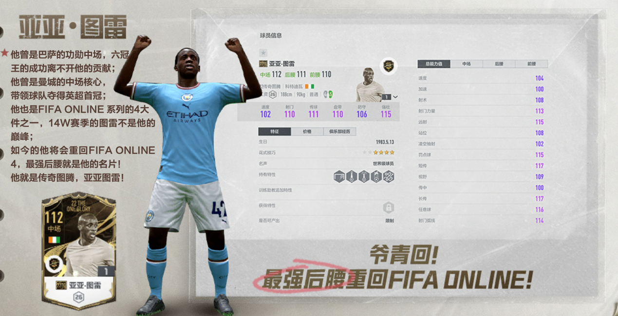 亲爱的各位玩家,随着世界杯节点的临近,不知道各位玩家已经是否已经开始期待各个球队即将到来的表现呢? 在距离世界杯开赛还有不到一个月的时间点,我们也将提前为各位玩家带来世界杯版本的内容剧透!四年一度盛典一触即发,让我们一起看看有哪些内容将和玩家见面吧! 【250工资帽登场,小幅提升满足特定球员使用需求】 在世界杯的版本更新后,玩家代表队工资帽将由245小幅提升至250,同时在本年度内不会再进行工资帽的相关调整。在今年的暑期版本中,工资帽由240提升至245,根据玩家问卷的结果,超过83%的玩家对于目前提升节奏表示认可。但随着22TOTS/LN赛季的球员卡使用率的提升,我们也收到了越来越多希望工资帽进一步提升的意见。因此在本次的版本更新中,我们将代表队工资帽由245小幅提升至250点,从而也能与新的赛季内容进行更好的匹配。 【亚亚图雷回归FIFA ONLINE,更有世界杯射手王盛大登场】 爷青回!FIFA ONLINE传奇后腰球员亚亚图雷将在本次版本以22TOG赛季形式进行回归!那个曾经在FIFA ONLINE系列呼风唤雨的传奇后腰,我们也将能在FIFA ONLINE 4中再次看到他的身影。同时,22TOG赛季球员卡将保留常规强化功能,玩家可以使用手头的球员卡对其进行强化! 除此之外,世界杯第一射手,德国传奇球员克洛泽ICON赛季,也将在世界杯版本中加入到游戏中。作为德国国家队的锋线大腿,他在世界杯赛场屡屡攻城拔寨,现在,他也将加入到游戏中! 【双世界杯赛季登场,球迷狂欢即刻开启】 在世界杯版本中,全新的世界杯赛季也将登场与各位玩家见面!不论是由在历史世界杯舞台表现优异的球星构成的世界杯最佳(BWC)赛季,还是由参加2022年世界杯的球星组成的22世界杯(WC 2022)赛季,相信都能勾起你对于世界杯的回忆,并对即将到来的赛事充满期待! 是狂喜还是失落,是出线还是告别,无论如何,让我们一起在这个冬天期待一段新的传奇故事的诞生吧。 【世界杯专属玩法上线,沉浸式体验此刻降临】 全新的世界杯模式即将上线,玩家可以在真实的世界杯球场中与真实球员一起直接体验世界杯比赛。在世界杯模式中,玩家可以控制参加2022年卡塔尔世界杯的国家队球员,体验从16强赛到决赛的征途,从而捧起属于自己的大力神杯! 玩家可以选择自己想要代表的球队 从16强的淘汰赛开始,体验专属于自己的世界杯征途。 除此之外,游戏内也将进行世界杯的整体主题&球员特性组合的上线,我们也希望通过这样的内容,带给玩家沉浸式的体验内容。 【全新排位赛3.0登场,属于强者的专属舞台即将到来】 全新的排位赛3.0杯赛内容即将登场,在现有排位赛的基础上,FIFA ONLINE4将会延展出全新的锦标赛玩法。在上赛季达到特定的排位赛等级的基础上,玩家可以参与到挑战者杯赛、传奇级杯赛和世界级杯赛中,与和自己一样水平的玩家进行更加聚焦的比赛内容。同时,专属的奖杯兑换商店也将上线,我们将把这些奖励,给到这些在排位赛舞台上表现优异的强者们。 以上就是关于世界杯版本的全部内容剧透了,我们也将在后续的推送内容中,为各位玩家带来详细的介绍和攻略内容。 希望在这个球迷的专属节日,FIFA ONLINE4能够通过丰富的游戏内容给玩家们带来美妙的游戏体验,能陪伴你在绿茵场上度过更多快乐的时光! |