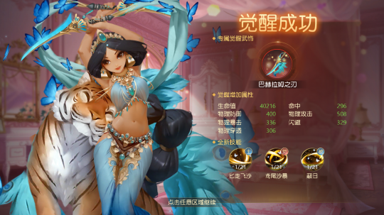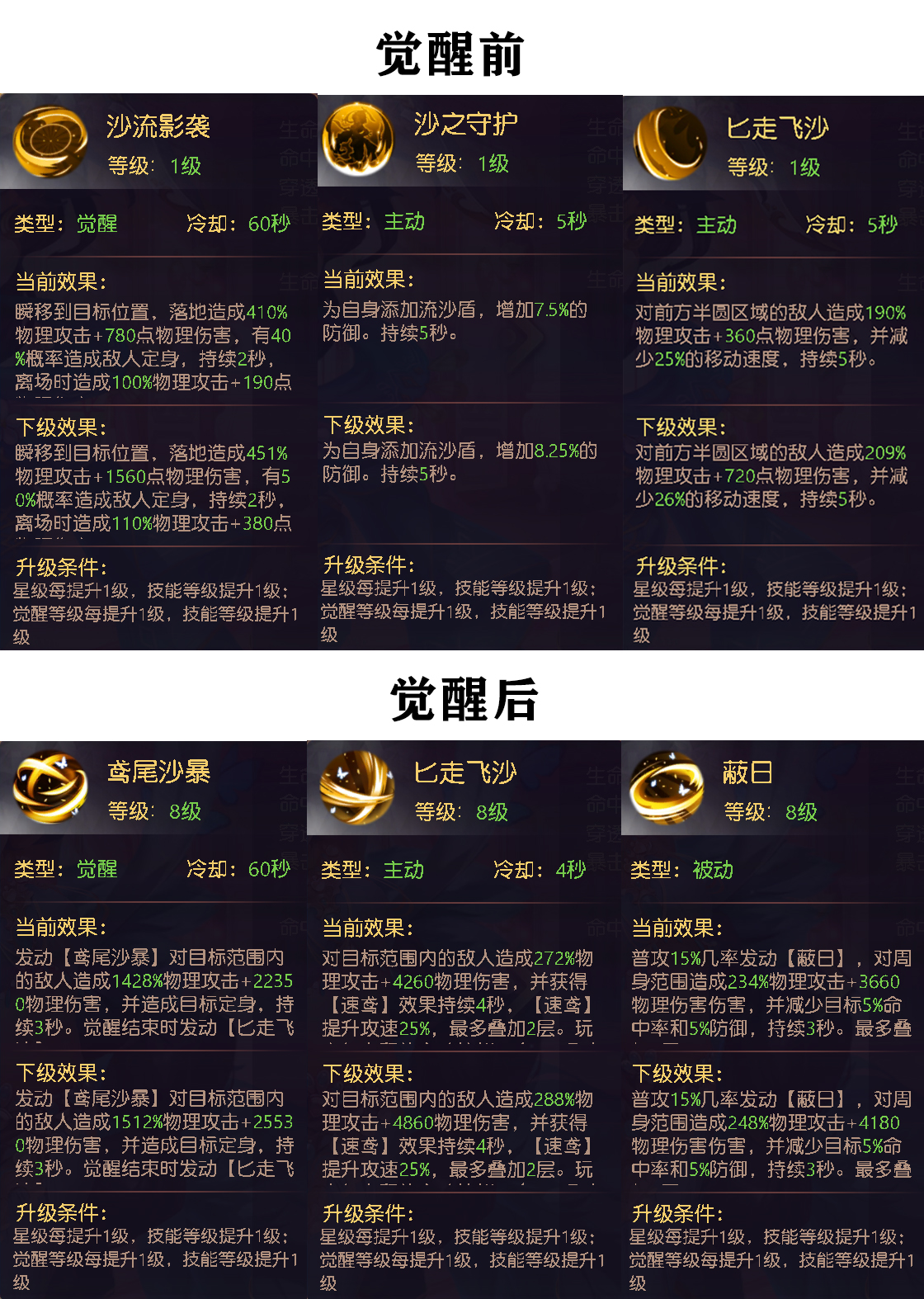 史诗级伙伴沙漠公主可通过觉醒蜕变成传说+品质。觉醒后武力值飙升!