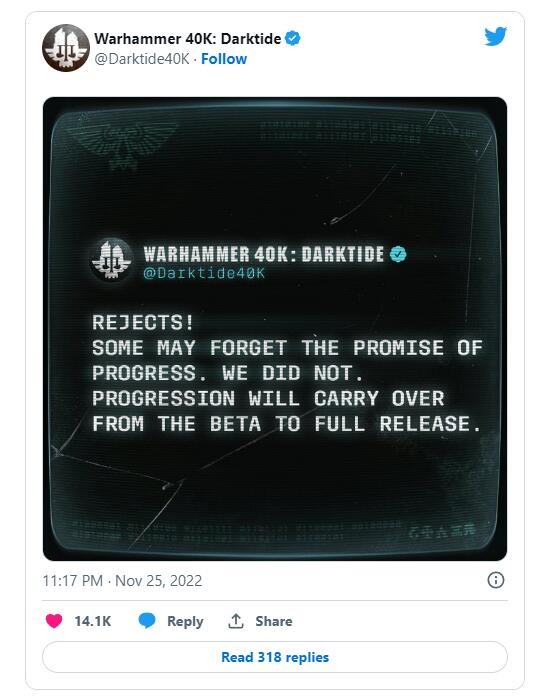 《战锤40K:暗潮》测试版进度可继承至正式游戏