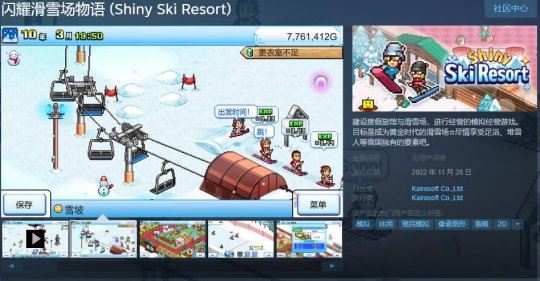 今日(11月28日),《森丘露营地物语》、《网球俱乐部物语》、《闪耀滑雪场物语》三款开罗游戏上线,游戏支持简体中文。 你将从白手起家,开局只有一间滑雪旅馆。四周只有广阔无垠的银白雪山陪伴你。使用开拓大自然获得的素材,可以开发新的设施。在配置新的设施后,会有新的客人被设施吸引而来,为滑雪场带来崭新的活力。在旅馆的知名度提升之后,小卖部和咖啡店也会开发新的商品。将滑雪场的雪道建设得更具挑战性后,可以看到客人华丽的表演。在滑雪大会上,使用从赞助商那里获得的道具,努力争取冠军吧。在滑到跳台时,可以表演爽快无比的跳跃!只要能帅气地获得胜利,赞助商对你的好感度就会提高,之后能获得更棒的报酬。以黄金时代的滑雪场为目标,努力登上滑雪界的顶点,创造最棒的寒冬度假胜地吧! 目标是世界顶峰!网球俱乐部经营模拟游戏!发挥你的经营手腕,让选手登顶世界排名第1吧!培养成力量型?还是用技术来取胜?将选手培养成如你所愿的类型吧。参加大赛提升知名度后,还会吸引大批赞助商哦。赞助商会为努力拼搏的选手准备高昂的资金,还会为他们制作更强的装备与道具哦。说不定还会有赠送温泉与餐厅等实用设施的企业闪亮登场!与五花八门的赞助商签订更多契约吧!当然,也别忘了回馈那些时常光顾校园的观众们哦。招待他们来一场烤肉派对,组织一次合宿旅行,都能让他们的干劲更加充足!营造出一个愉快融洽的俱乐部,会员数量自然越来越多!单打、双打、团体战……各种各样的大赛应接不暇。高歌猛进拿下大满贯!?冠军奖杯就在你的眼前! 修整森林,打造美丽的露营地吧。还能经营商店销售周边产品哦。首先建造帐篷搭建地,迎接顾客吧。搭起帐篷、点燃篝火、拍摄照片,顾客们会享受起各自的露营生活哟。露营地的活动设施也很有人气。“观察野鸟”、“溪流垂钓”、“骑马体验”,依靠这些平日享受不到的体验或许能让顾客成为粉丝哦。邀请露营新人享受露营体验吧。要是喜欢上了,或许会成为回头客哦。似乎也可以邀请兔子、松鼠等可爱动物前来哦。要是露营地舒适,它们甚至有可能会住进来?!露营时道具也是很重要的哦。要是在附近的城镇中建立直营店,买完东西的顾客就会前来露营地。若能点燃城镇的露营热情,或许就会引起一股热潮哦。将店铺搬迁至各个城镇中,可以吸引新的顾客。让他们购买店铺中的道具,并逐渐增加露营地粉丝。这正是你大显身手的好机会。来,就用你的双手去经营与大自然融为一体的人气露营地吧。 |