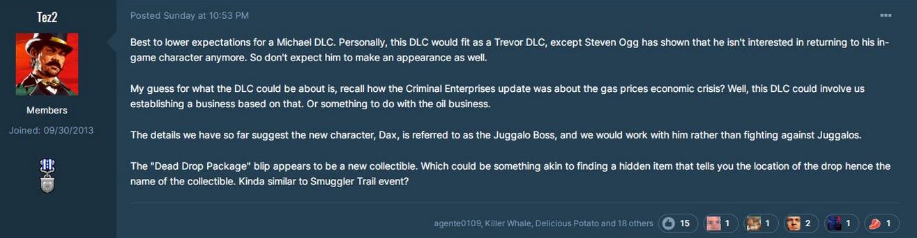 《GTA OL》可能是迄今为止,将线上模式运营得最好的单机游戏。九年如一日,R星对于这款旗下最卖座的游戏,始终没有产生懈怠。每隔一段时间就会给玩家们,带来新的剧情、任务、装备以及故事。 为了能够增加与线上模式间的关联性,故事模式中的主角崔佛、富兰克林陆续被R星加入到线上模式中,有了自己的故事线和新定位。这也算正式将线上、线下连接到一起,交代了主角三人组的结局。也正因如此,玩家们对麦克的出镜也颇为期待。 根据之前揭露的消息,许多玩家确信在今年《GTA OL》的冬季DLC中,麦克会迎来在线上模式中的首秀。然而,对R星游戏进行过多次准确爆料的舅舅党Tez2,日前却给所有人都泼了冷水: “最好不要对冬季DLC抱太高的希望,事实上这个DLC的内容更适合崔佛。只是史蒂夫-奥格(崔佛扮演者)对扮演这个游戏角色已经感到厌烦,所以别指望他会露面。” 如果Tez2对《GTA OL》的冬季DLC爆料属实的话,那就无异于是在告诉大家,麦克和崔佛都不会在新的拓展故事中回归。甚至于说,冬季DLC本身就是一个以原创人物而展开的故事任务。 自去年的佩里科岛任务更新后,《GTA OL》发布的内容就渐渐变得有些平淡化了。在几个月前的夏季更新中,玩家们还见识到了有史以来任务奖励最低,任务难度最高的剧情任务。 跟上岛、博格丹完全无法比拟的收益,不亚于将末日三分红关重玩一遍的最终任务。这使得玩家们对地图上带有U字的任务图标,充满排斥感。如果要说夏季DLC的探员任务中有什么亮点,那应当是最终关卡在摸黑状态下找保险丝时的那种,肾上腺素飙升的感觉。 2023年《GTA5》将迎来十周年纪念日,此前很少有单机游戏,可以拥有网游一般长的寿命。看看《荒野大镖客2》的现状,如果没有《GTA OL》的存在,《GTA5》现在或许也只是一款曾经辉煌过,但玩家在持续流失的优秀开放世界作品。 而随着《GTA 6》距离发布日期越来越近,R星的工作重心也会不可避免地发生偏移。如此一来,在后续的大更新中主角团三人的齐聚只会变得更加困难。 那么在这些年《GTA OL》发布的DLC中,大家印象最深的又是哪一个呢? |
