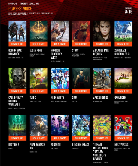 TGA玩家投票主机vs多平台 《战神5》、《老头环》票数打平