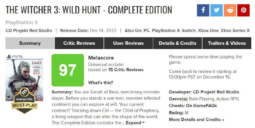 《巫师3》更新次世代翻红 玩家数升到7w 跻身SteamTop10榜