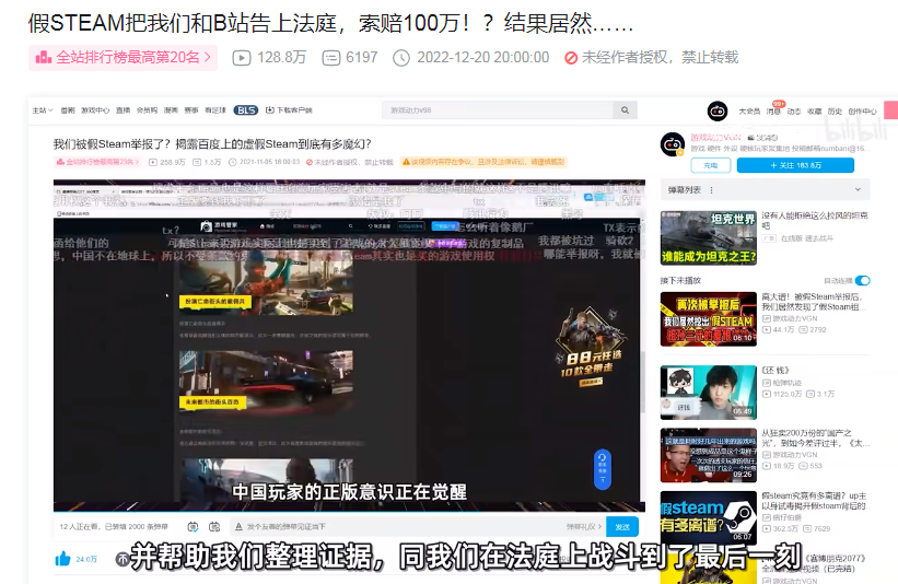 媒体吐槽假Steam被索赔百万 对方还要告腾讯B站 遭法院驳回