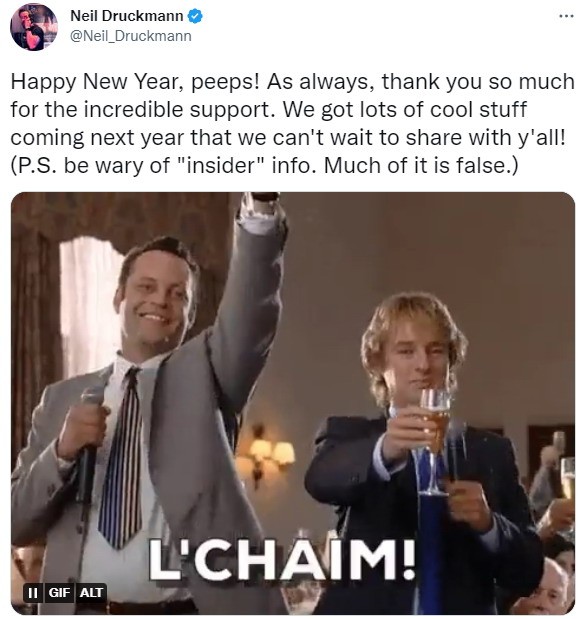 之前有泄密者称《最后的生还者3》正在开发阶段。近日顽皮狗总裁Neil Druckmann在推特上发布新年祝贺,并似乎否认《最后的生还者3》正在开发的传闻。 Neil说:“新年快乐,朋友们!非常感谢你们的大力支持。我们在2023年会有很多很酷的内容,迫不及待想与你们分享(P.S. 对所谓的内幕消息要保持警惕,因为很多都是假消息)。” 虽然Neil没有指出与《最后的生还者3》有关,但关于该作正在开发的传言就在最近出现,因此有理由认为Neil是在暗示《最后的生还者3》还没有开发。 当然Neil也可能在误导,是为了阻止关于《最后的生还者3》更多传言出现。而且他也没有否定《最后的生还者3》存在,所以玩家们可以继续期待! |