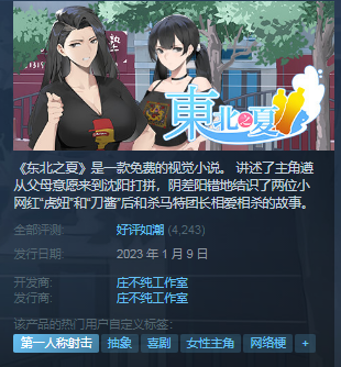 由虎哥、刀哥、杀马特团长等东北地区主播,发布的极具地域特色的短视频,被网友们归为《东百往事》系列(也被称作二次元老番)。而对于许多人来说,这可能是短视频时代到来后,最土味、抽象的整活视频之一。 即使你不是这类视频的受众人群,但也一定听过“没你滴好果汁吃”、“你比泰森还牛x”等语录或见过这样的表情包。但也因为部分充斥着整活的视频内容相对粗俗,《东百往事》与几位主播基本都曾遭到过封禁,当前各种二创反倒更为人所熟知。 可令人万万没想到的是,这个贴着土味、抽象标签的视频系列,近来在以游戏作品的方式呈现出来后,却成为了让无数玩家热捧的作品。 1月9日,Steam平台上架了一款名为《东北之夏》的游戏。游戏梗概中,作者庄不纯是这样形容的:《东北之夏》是一款免费的视觉小说。讲述了主角遵从父母意愿来到沈阳打拼,阴差阳错地结识了两位小网红“虎妞”和“刀酱”后和杀马特团长相爱相杀的故事。 作为抽象乐子人心目中的“耶路撒冷”,《东百往事》故事的发生地“沈阳大街”在游戏中得以呈现出来。更令人意外的是,原本在外表上透露着粗犷、中二甚至有点愣的主角们,在游戏中全都是以性转的方式出场的。 对虎哥、刀哥以及杀马特团长这种颇具喜剧张力的改变,让游戏充满抽象气息,而熟悉《东百往事》的网友们却对此极为受用。 至于游戏标签上所出现的“第一人称射击”,全是玩家的个人行为,切勿上升到整个玩家群体...... 有玩家质疑过这款游戏是如何获得“正版授权”的,但作者庄不纯语出惊人,表示是去直播间问的,他们说可以! 不得不说,这种谈授权的方式相当抽象,看起来就不像是普通人能干得出来的。可现实果真就如此魔幻,庄不纯只花了30块钱就得到了虎哥的应允。非但如此,几位主角本人的出镜,也多少给《东北之夏》提升了波关注度。 将原本抽象且土味的《东百往事》游戏化,想必绝大部分人初闻这种设定,都会对主创抱有“纯玩梗”、“流于表面”、“吸引噱头”的想法。然而事实绝非如此,《东北之夏》的作者庄不纯在融入许多视频名场面的同时,对场景的刻画和东北风土人情的勾勒与诠释才是重点。 在游戏中跟性转版的虎哥、刀哥谈恋爱,算是外界比较浅显的看法。当然啦,在立绘设计上《东北之夏》也确实挺吸引人的。不过其更深层次的含义,还是想在一定程度上改变网友对东北人的刻板印象。而不是一提到他们,脑海中率先浮现的就是土味视频中咬打火机的主播。 《东北之夏》首发到现在仅仅过去三天,可在多达4200个玩家评测中,它轻易就收获了98%的好评率。如果没有过硬的游戏质量,是万万无法做到这点的。如今主创团队已经在准备DLC了,庄不纯还向玩家保证届时将会有更充实的内容。 兴许在今后的日子里,《东北之夏》会成为大家心中新的网络记忆。 |