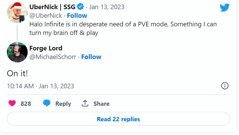 最近《光环》主播UberNick发推称《光环:无限》急需要一个PvE模式,能让人无脑玩。令人意外的是,《光环:无限》熔炉模式首席设计师Michael Schorr给了一个简答明了的回复:已经在做了。 Schorr没有具体说明这个PvE模式可能是什么,尽管他在另一条推文中提到他们“正在努力将战役AI引入熔炉模式“,这是否意味着他们只是给玩家提供工具并让他们在熔炉模式中创造自己的PvE模式?多年来,一些粉丝最喜欢的模式已经在熔炉模式中制作了,所以这并没有什么错,但似乎Schorr是在暗示有更多的事情发生。 值得一提的是,《光环:无限》的支援工作室Certain Affinity开发某种“新的令人兴奋的”模式已有一段时间了。虽然不太清楚到底是什么模式,但传闻(也有推测)称这可能是某种形式的大逃杀玩法,或者至少是能吸引《堡垒之夜》和《Apex英雄》的粉丝。有报道称该模式将会对新手玩家更加友好。 |