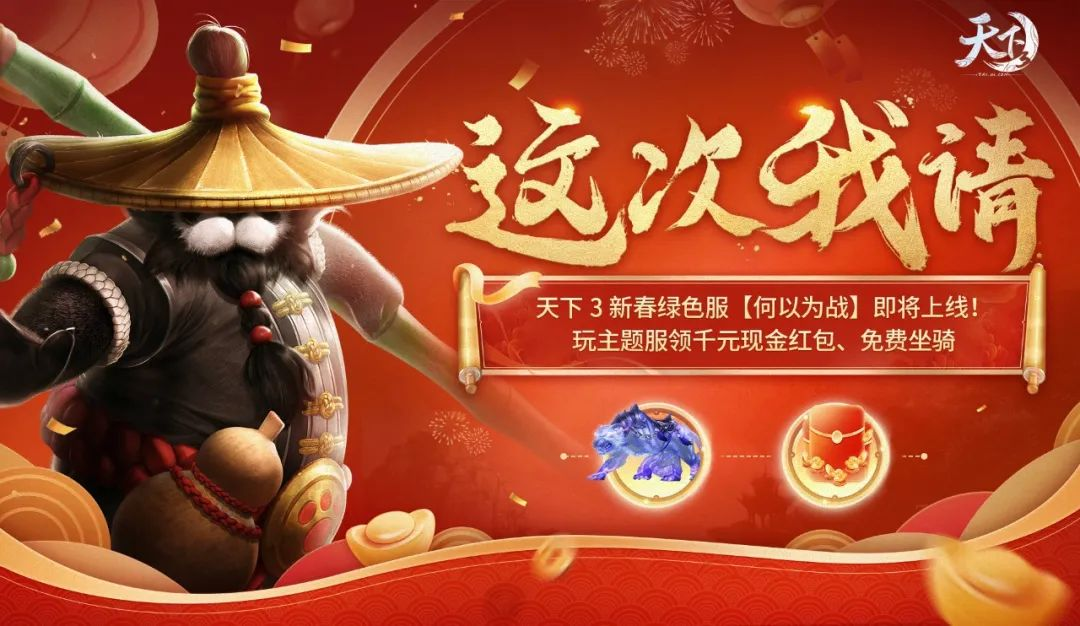 龙飞凤舞万象新,腾达天地处处春。《天下3》新春绿色服【何以为战】预约开启后,便受到了诸多少侠的关注。新服到底有什么惊喜等着各位少侠呢?今日就让我们来一一揭晓!除了神秘的新伙伴,【何以为战】还准备了多重福利——千元现金红包、价值1500元宝大礼包、游戏坐骑、限量称谓等奖品。事不宜迟,下面一起来看看本次爆料与福利资讯吧~ 【何以为战】新伙伴亮相——熊猫人 “你想请我喝一杯吗?”别误会,这不是想蹭吃蹭喝,而是他跟你这么讲的时候,一定是把你当成了真正的朋友。 大荒世界,无奇不有,你总能在这里遇到形形色色的神秘角色。甚至有些时候,哪怕是阅历最丰富的侠客,也搞不清楚眼前贵客的身份——就比如,那位腆着大肚子,甩着酒葫芦的家伙进城时,没人知道这位浑身皮毛黑白相间,仿佛一头大熊,还打着饱嗝的家伙,究竟是何方神圣。 于是乎,人们经常戏称他为熊猫人。 他常说,自己的故乡是一个离大荒很远,被迷雾笼罩的大陆。 还说,自己在故乡经历了无数的冒险,与战友们一起拯救了无数次世界。他说自己去过很多地方,最喜欢的事情就是旅行。以至于经常有人看到,他提溜着自己那根身经百战的棍棒,挑着那只刻满了刀剑划痕的酒葫芦,探索大荒的每一个角落。 腾龙渡渡口、酒坊村,甚至是人迹罕至的飘渺峰,都有人看到了那个憨态可掬的圆滚滚身影。也许,这就是传说中灵活的胖子吧? 从故乡来到大荒的不久之后,他马上就要迎来这里最古老的节日——春节。他说,在大荒与新朋友们一起击退年兽的时候,让他想起自己也曾在故乡与年兽交战。有一次,他在酩酊大醉之际,拍着朋友们的肩膀:“如果有机会,我一定带你们尝尝我侄女亲手酿的酒,那绝对是全天下最好喝的美味,嗝~” 最近一次,有人分别在江南桃李花林和雷泽有个小村遇到了他,只当是身手了得!依旧是圆滚滚的身形,散发着酒香味的黑白皮毛,摇摇晃晃但又无比灵活的身手——当然也少不了标志性的口头禅:“嘿,你想喝一杯吗?下次我请!” 开服迎友送好礼——1500元宝大礼包&神秘幻容丹 听说为迎接各位少侠的到来,好客的熊猫人还准备了不少丰厚好礼。首先是早前已爆料过的大礼包——价值高达1500元宝,内含盈福经验丹·普*5 、炼化之灵(330)、金色称谓【放歌弹长铗·一战惊天下】、限时头衔【何以为战】、【封】雷音溟钻等免费奖励。只需少侠们参与新服预约,达成战友集结,即可通通带回家! 福利当然不止于此,还有事关神秘新伙伴的特色好礼——1月18日新春绿色服【何以为战】开服后,全服少侠均可在碧翎渡或腾龙渡的卯兔处,领取2颗带有外乡气息的神秘幻容丹!少侠使用此幻容丹,可以惊喜幻化成熊猫人的模样哦! 《天下3》×支付宝 现金豪礼大派送 恰逢新服上线与新春来袭双喜临门,本次不仅熊猫人开门请客,还有《天下3》联合支付宝给各位少侠送上超多豪华奖品! 1月18日-1月31日期间,少侠们进入天下3×支付宝【这次我请】H5活动,即可在支付宝领取现金红包与免费坐骑【幽冥虎】!完成指定任务,更是能领取最高千元的现金红包!详情步骤可见以下: 进入【这次我请】H5后,可使用网易通行证(未有账号的将支持快速注册)登录,或使用手机号+验证码的方式登录。 首次完成登录,少侠们将收到2个大礼包,分别是免费坐骑【幽冥虎】和若干现金红包的额度。在H5中绑定少侠在新服的角色后,【幽冥虎】将在少侠们完成指定任务后发放到对应角色中。 各位完成绑定后,每完成一项活动任务,都可以提升H5红包的额度!值得注意的是,每日提现额度也是有上限的,所有少侠将共享当日的总额度。所以大家记得抓紧时间完成任务,及早提现哦!当天不能提现也可以领取礼包,助力少侠更好成长! 《天下3》×网易云游戏 限时免费畅玩游戏 除了以上众多奖品,我们还推出暖心的假期服务。为了提高少侠们的游历体验感受,让大家能随时随地畅游大荒,春节期间《天下3》携手网易云游戏推出了限时的免费畅玩活动!少侠们只需从预约页面或是【这次我请】H5中进入云游戏平台,即可极速畅玩天下3。 神秘的新伙伴、丰厚的奖品好礼轮番上阵,尽在新春绿色服【何以为战】!你还在犹豫什么呢?现在就前往https://tx3.163.com/hywz/ 预约新服,领取丰厚奖励吧!佳节将至,可趁着诗酒年华,寻三五知己好友,一同游历新服,共度新春哟! |