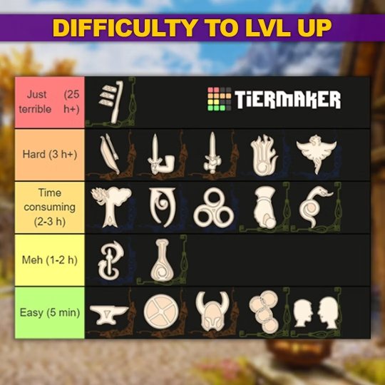 在国外论坛中,skimm12分享了自己在雪漫城把所有技能练满的经历,并将技能按照练级所需时长划分等级。