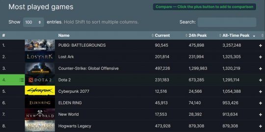 如果去除网游,只看单机游戏的话,《霍格沃茨之遗》能排名第三,仅次于《赛博朋克2077》和《艾尔登法环》。