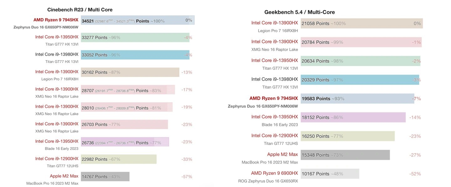 AMD 7945HX移动CPU评测解禁 与13980HX不相上下