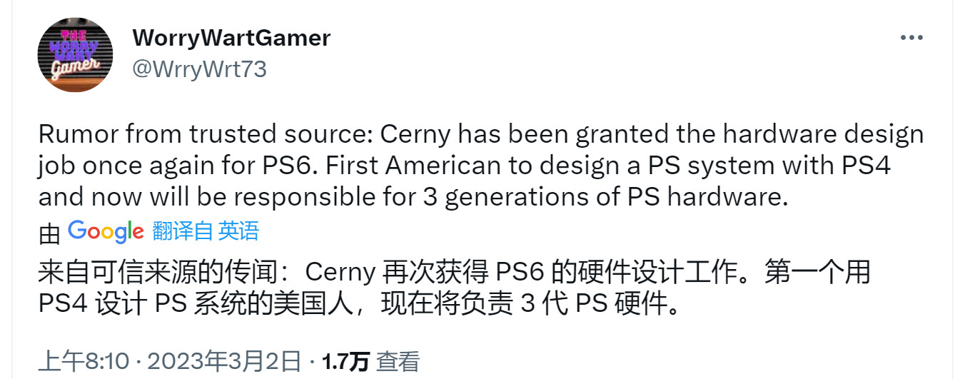 过去两周流传着一个消息:PS4和PS5设计师Mark Cerny正在为索尼设计新一代主机PS6。之所以有这种传闻,这是因为Cerny提交的一个新专利中提到了一个在PS5上进行光追加速的方法,但进一步的分析认为这可能是为PS6准备的。 关于PS6主机的传闻至少是一个有根据的猜测 Twitter上一些用户分享了这个传闻,称Mark Cerny正在领导设计PS6: 2022年2月22日,推主PS6Countdown发推称Mark Cerny正在努力开发PlayStation品牌的未来,很有可能是PS6。 2023年3月2日,推主WorryWartGamer也发布了类似的爆料:据可靠消息人士,Mark Cerny再次负责PS6的硬件设计工作,Mark Cerny是首个设计PS系统的美国人(PS4),现在将负责3代PlayStation硬件。 如果以上两个舅舅党推主不可信的话,那么知名媒体Digital Foundry记者Dictator在游戏论坛Resetera上帖子更有说服力。他认为Cerny的专利并不是基于PS5硬件,可能是下一代主机PS6。 “这个专利描述的硬件PS5根本没有,这个专利因为也不会提升PS5的性能,因为它描述的RT光追单元类似于英特尔或英伟达的,而PS5和AMD的主机并没有该单元。这很有可能为将来的PS迭代设计的。”PS迭代可能指的是PS6,也有可能是PS5 Pro。 考虑到Cerny是PS4,PSV和PS5的首席系统架构师,所以由他主导设计PS6并不是一个多么奇怪的事。 据索尼文件,PS6将在2027年之后推出,据说《最后的生还者3》可能也会登陆PS6。 |