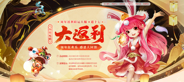 《问道》17周年大服来了!双线联运版返利大服“道十七”开服定档3月17日,超多惊喜返利活动上线,多种数码豪礼放送中,道友快来预约新服、抢注角色! 3月10日将开启历史累计充值返利统计,截止至4月9日,按照历史充值金额【玩家账号截止至2023年03月09日23:59在问道所有区组(包括道十七区组)的充值兑换额】乘30%之后再向下取50的整倍数。返还起点为历史充值额大于等于300元,当历史充值额大于等于15万元时,返还额度上限预期为45000元。周年返利联运大服“道十七”将于03月07日开启预充值,03月07日-03月09日23:59的预充值也会被计入历史充值金额。返还上限不为0的玩家在活动期间(3月10日-4月9日)每充值100元可获得价值预期为50元的额外银元宝或赠品道具。 即日起截至开服当天3月17日11:00,在道十七服务器进行预充值即可参与活动,累积预充值额度越高可参与抽奖的次数也就越多,达到30/100/300/800/1500/3000/6000元后分别获得一个抽奖资格码,最多可获得七个抽奖码。活动奖池内奖励超丰厚,ROG、外星人、华为等多款笔记本电脑、机械键盘、鼠标等数码豪礼限量放送,道友赶快加入进来吧! 首充礼包限时进行中,本次“道十七”新服首充活动将采用累计充值模式,累计达到固定额度后将获得对应的首充礼包,礼包内的首充红包有几率开出随机元灵、随机神兽、元灵精魄、相性首饰。即日起截至4月16日,在“道十七”区组首次创建角色后的前三天充值就能获得首充好礼,充值每达到10元、30元、100元即可获得各种奖励,首充红包、绫罗幻形镜、技能觉醒符印、功能卷轴等道具送不停! 新服累计充值活动开启,玩家充值每达到10元、50元、100元、500元、1000元、3000元、6000元七个阶段时,可获得累计充值礼包,根据充值金额可获得对应的豪礼积分,更有无忧套餐卡?周卡、特级神兽丹、轮转玉、赠品永久时装等好礼。使用豪礼积分可以参与“抽豪礼”活动,有概率获得随机神兽、随机变异、80级随机相性首饰等超级大奖;豪礼积分也可以直接兑换道具,或兑换喜袋耐久度,喜袋有机会开出随机元灵等大奖!除累计充值礼包,充值兑换每达到50元、100元、500元、1000元、3000元、6000元六个阶段时,还可以额外获得一个刮豪礼资格,刮豪礼有几率获得随机元灵、限定八阶坐骑光焰北斗、随机九阶坐骑、随机神兽等超级大奖。道友注意以上奖励每个阶段只能领取一次哦。 现在来预约新服还有专属礼包赠送,3月17日前来官网活动页面预约《问道》新服“道十七”,开服后可领取新服专属福利。流金岁月?碧落、称号“盖世无双”、九尾狐铭牌、羽化丹、惊妖铃等道具直接打包拥有! 《问道》双线联运版返利大服“道十七”角色抢注现已开始,道友快来抢注心仪昵称吧! |