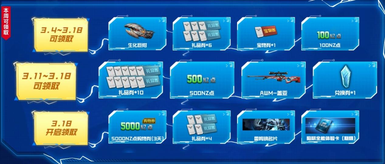这个3月,来逆战激战雷鸣峡谷!面对电闪雷鸣,千钧雷霆的挑战,你会如何突破? 随着逆战全新塔防版本:雷鸣峡谷即将登场,逆战还将为各位玩家送上满满的福利!三大全新版本掉落,5000NZ点购物券、免费20连抽、188背包解锁卡限时0元、3月回归好礼,奥特曼绝版道具获取等免费福利同样等待着玩家们的参与,还有万元战备礼,以及版本专属BOSS珍藏系列道具,赶紧来一起看看吧! 全新塔防地图即将上线 逆战3月新版本的塔防地图——雷鸣峡谷,即将正式上线,伴随着电闪雷鸣,新的威胁迎面而来。 全新塔防地图雷鸣峡谷,将融入更多独特玩法: 千钧破障,开辟新路线:在雷鸣峡谷中,障碍物虽然可以阻碍赛博坦军团的进攻,但坚固的障碍,也抵挡不了战车独角仙以雷霆干钓之力破障开辟新道路,可被改变的塔防路线,将带给玩家更多挑战。 电闪雷鸣,以雷霆击破护盾:雷鸣峡谷的部分怪物拥有牢不可破的能量护盾,必须借助峡谷内蕴含风云变幻之力的雷霆神剑,其释放的闪电可以使玩家获得感电状态,能有效击破护盾,造成大量伤害。而版本专属掉落裂隙雷刀,释放的雷电技能在雷鸣峡谷与雷霆神剑的闪电具有相同功效。 除了全新塔防玩法,新版本地图还将掉落三款全新武器装备——裂隙雷刃、雷枪裂空和雷狼狂面。 你能否使用雷霆攻克最终的半机械化狼型生物?快来逆战,展示你的实力吧! 免费福利大曝光,3月好礼领不停 随着全新版本上线,逆战还为各位玩家准备了多重福利好礼! 3月11日登录逆战,即可领取礼品券*10,助你在宝物工坊轻松十连抽。在整个3月活动期间,通过参与活动,你将累计收获礼品券*20张,一定不要错过了! 3月18日登录逆战,玩家们还将轻松领取5000NZ点购物券。 还有更多福利等你来解锁——188背包解锁卡限时0元、3月回归好礼,奥特曼绝版道具获取,网吧全模式道具畅享体验等免费福利,同样等待着你的参与,赶紧行动起来吧! 雷鸣宝藏降世,万元战备每日免费领 在3月9日至4月20日期间,逆战还为各位玩家准备了每日可免费领取的雷鸣宝藏! 每日都可抽取的万元战备,一定可以给你带来超值体验! 通过完成每日任务,即可获得开启雷鸣宝藏的钥匙,消耗5枚钥匙即可激活奖池,10000NZ点购物券、血魄之戒、巴雷特-炎狱龙魂、宝物券、清凉的泳池派对-艾蓓/欧泊角色等万元战备,等你带走,帮你更好备战新版本! 各位玩家领取的奖励为不重复获取,累计领取4个奖励后,宝藏奖池将被更新重置呦! 同时为迎接新版本的到来,雷鸣宝藏中还加入了版本专属好礼,累计开启8次宝箱,并登录游戏,即可获得BOSS珍藏系列永久绝版长枪!赶紧来活动页面抢先行动吧! 3月进阶战备指南,更多惊喜等你 工欲善其事必先利其器!为了帮助各位玩家们攻克新的挑战,本月活动还将迎来一些全新的道具,智能守护者-飞燕号现已登场,玩家们可以通过活动页面查看详细内容,更多战备道具也尽情期待哦。 当然,为了不让玩家们错过福利,在活动页面还贴心地为大家设立了3月版本福利万年历板块,福利领取时间一目了然,大家可以根据日历的时间推进自己的福利领取进度,以保证获取全部道具与最终的总计20连抽的礼品券哦! 那么,各位玩家们,你们准备好了吗?逆战3月塔防版本地图雷鸣峡谷即将登场,大家要抓住机会,不要错过诸多福利和联动的绝版道具哦。 快一起来逆战领福利,备战雷鸣峡谷,以雷霆万钧之势共同战斗吧! |