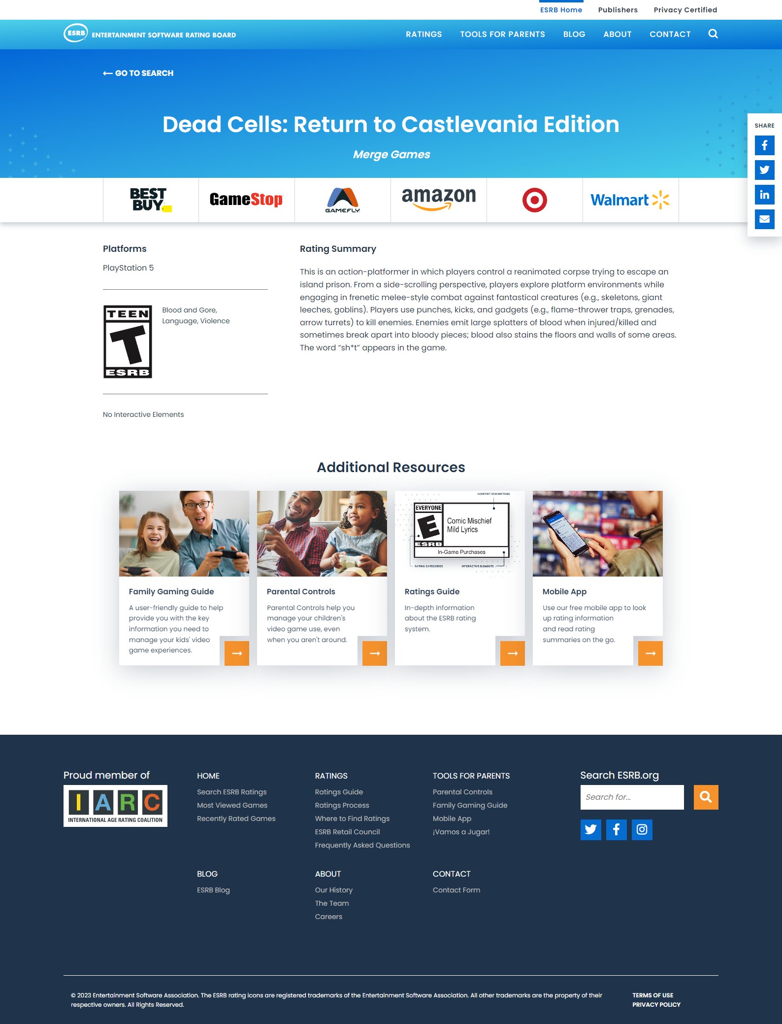 虽然尚未正式公布,但美国娱乐软件分级委员会(ESRB)已经完成了对《死亡细胞:重返恶魔城版》的评级,明确暗示将会登陆PS5。