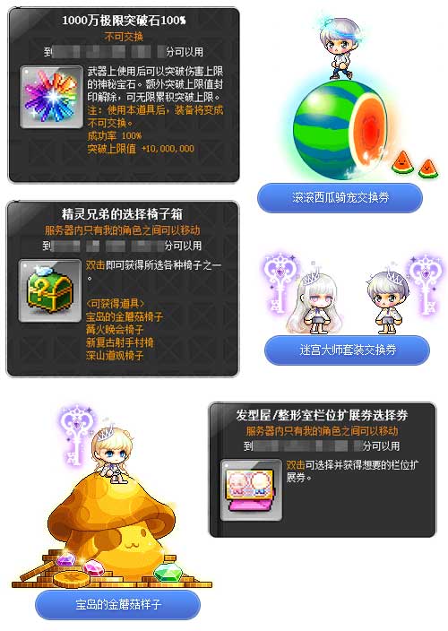 你是否相信能有人穿越时空去改变“历史”?在经典游戏《冒险岛》V197新版本“未来东都”中,冒险岛勇士接收到了来自未来霓虹国守护者亚西亚的求助,为了能拯救即将崩坏的霓虹国,勇士将舍身冒险,穿越未来与过去之间!感兴趣的玩家千万不要错过啦! 通往未来之门,命运之约守护未来东都! 3月29日起至5月9日,玩家可接取[未来东都]通往未来之门任务,未来的霓虹国将要迎来灭亡的命运,守护者亚西亚找到了多次拯救世界的冒险岛世界勇士,希望能解救面临崩坏危机的霓虹国。亚西亚制作了传送口通行证,让冒险岛勇士穿越时空回到过去修改历史,把历史最后出现的浪潮困在时空尽头,阻止霓虹国的消亡。这是第一次迎来的机会,也将是最后一次! 本次剧情分为三章,完成剧情后,可以获得章节奖励。剧情开放时间:第一章3月29日;第二章4月5日;第三章4月12日。通过未来东都币可以在补给商店兑换更多实用道具。 另外,完成未来东都剧情的玩家还可以接取[未来东都]挑战!讨伐欧啦啦任务,通过组队1-6人可以进入副本,根据挑战每周最高记录获得奖励。 活动期间,通过左侧图标接取[未来东都]欧啦啦挑战课题任务,完成指定课题任务,还能获得特别奖励! 全新人偶系统重磅登场,冒险岛美容师开放营业! 自V197版本更新之日起,玩家即可通过装备栏-特殊中的【美容室】按钮,可以直接打开人偶专用UI,通过切换【发型】【整容】栏,可以分别进入发型屋、整容屋。 参加游戏中开展的各项线上活动,就有机会获得<发型屋栏位扩充券>和<整容室栏位扩充券>,双击使用可以直接扩充发型屋/整容室栏位,目前最多可各扩展至10格。 目前只有通过皇家理发券/皇家整容券获得的发型/脸型,可以通过发型屋、整容屋的【保存发型/脸型】按钮,保存在对应的空白模特上。 点击【应用发型/脸型】,消耗3张皇家理发券/5张皇家整容券后,模特中的发型/脸型与角色当前装备的发型/脸型互换。 在人偶系统专用UI中,点击已保存的发型/脸型右上角的垃圾桶按钮,可以直接删除该发型/脸型,删除后,该模特变成空白,可以重新保存其它发型/脸型。 挑战!突破极限+!奖励内容满满~ 3月29日至5月9日,在各大主要村庄找到NPC萧公,接取[突破极限+]挑战!突破极限+任务,通过各种途径收集突破能量,累积突破极限分数,根据极限分数打通任脉和督脉,在变强的同时还能获得对应的丰厚奖励! 突破极限分数累积达到一定分数会自动解锁任脉和督脉的穴位,并获得对应奖励。同时解锁人中穴位还能获得额外奖励! 解锁人中穴位后,可以接取[突破极限+]收下庆祝练到人中的礼物吧任务,并获得对应奖励! 点击对应按钮,可以获得突破极限+极限突破石,即可为武器突破极限。 此外,5月10日至5月23日,根据累积的突破极限分数,玩家还可以获得以下排名奖励。 短中分勇士再现~特别辅导是什么? 4月5日起至4月25日,接取[特别辅导]短中分勇士与特别辅导任务,获得特别辅导技能,通过完成[特别辅导]基础训练、[特别辅导]实战应用任务,获得战斗记忆可用于强化特别辅导技能效果。每次完成基础训练都可以获得战斗记忆和额外礼物。 每日签到!精灵兄弟的黄金马车~ 4月5日起至6月27日,点击左侧图标,打开精灵兄弟黄金马车签到界面,每日累积在线时间1小时,通过完成按钮累积签到。盖上签到图章,即可获得大量礼物哦~ 当精灵兄弟的黄金马车每当累积签到7次时,将发放特别礼物哦。 本次“未来东都”版本意在为中国玩家带来更完善更合适的游戏内容。希望这充满科幻色彩又极富趣味性的版本能让大家眼前一亮! 【关于冒险岛】 《冒险岛》是由韩国NEXON开发、盛趣游戏代理运营的2D横版网游。其开创了横版卷轴网游新模式,融入了家用主机游戏简便易上手的操作玩法,有别于大量斜45度视角游戏,独树一帜脱颖而出。凭借优质的游戏内容,丰富的职业、剧情,成功运营至今持续充满活力,被业界和玩家都奉为经典。在韩国PC游戏的榜单常年稳占前十名的位置,也是中国Q版卡通游戏的佼佼者。其千变万化的换装系统、丰富精彩的任务剧情,老少皆宜,经久不衰,为无数玩家创造了难以割舍的童话般的游戏体验。 |