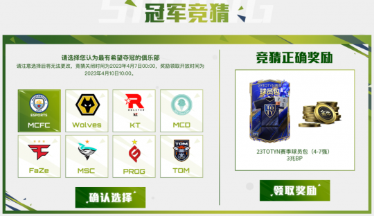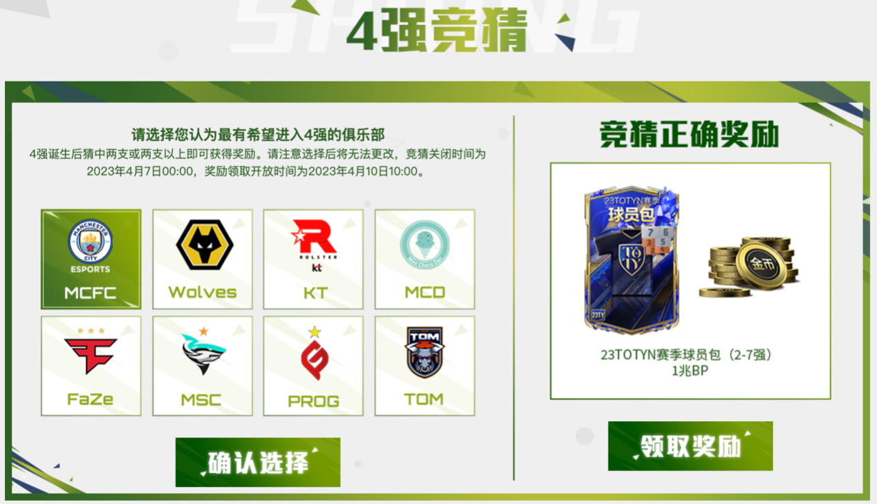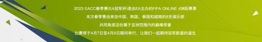 我们很高兴地宣布EA冠军杯(EACC)2023春季赛战火燃起!这是EA SPORTS FIFA Online 4系列赛事在2023年的首场国际比赛。历经三年的线上赛,来自线下的激情热火再次点燃EACC,我们对此激动万分。来自亚洲各地的FIFA Online 4顶级战队将齐聚一堂,为广大玩家带来为期一周的顶尖赛事盛宴! EA冠军杯2023春季赛将于4月7日至4月9日在上海举行,来自中国、韩国、泰国和越南的总计8支顶级战队白刃相见,为10万美元的奖金池而战,更为排名积分而战,积分的高低会直接影响到每队通往FIFA电竞洲际杯的征程。此次春季赛采用双败淘汰制和BO5赛制,选手们将同时接受个人和团队层面的考验,大大提升赛事的观赏性和竞技性。各战队是会用硬实力过关斩将还是田忌赛马智取晋级,我们拭目以待! 玩家可以通过中国、韩国、泰国和越南的直播平台观看EA冠军杯2023春季赛,足不出户感受EA冠军杯的魅力与激情! 参赛队伍 来自各个参赛国家参赛队伍的完整名单如下: 中国:曼城电竞战队、狼队电子竞技俱乐部 韩国:KT Rolster、MIN CHO DAN 泰国:FaZe Clan、MS CHONBURI 越南:PROGAMER、TOM 赛程 淘汰赛:4月7日 16:00(北京时间) 淘汰赛:4月8日 15:00(北京时间) 半决赛及决赛:4月9日 16:00(北京时间) 合作直播平台 哔哩哔哩、斗鱼、虎牙、微博 游戏福利大放送 活动期间内每日登录及观看比赛可获得惊喜福利,正确竞猜4强及冠军队伍还有额外福利,请前往《FIFA Online 4》官网参与! |