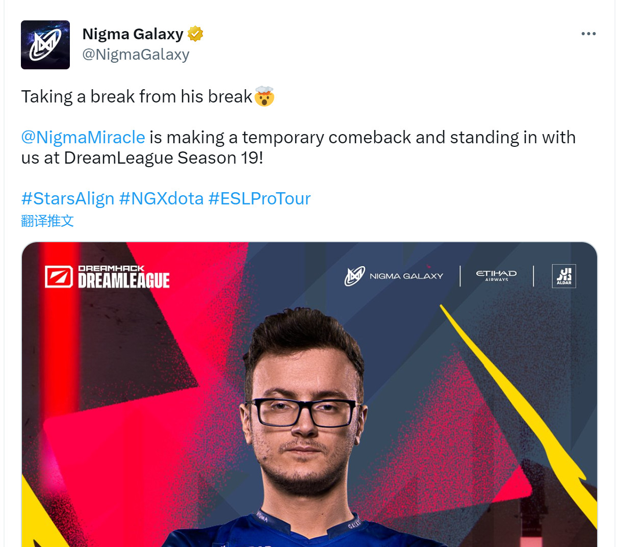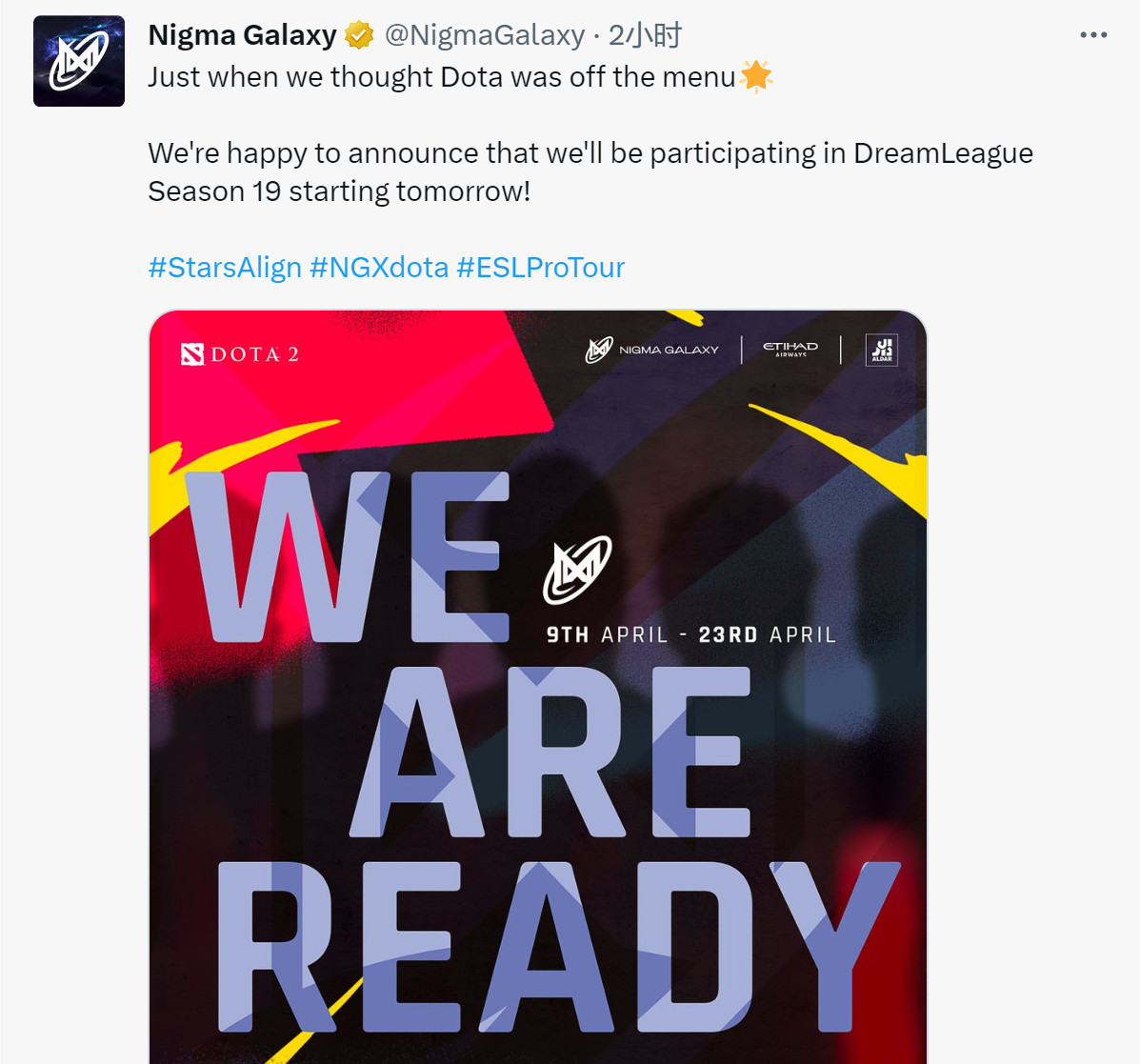 由ESL举办的梦幻联赛S19即将于4月9日开打,中国区被邀请的LGD战队因为签证问题而不得不放弃,LGD的参赛资格被欧洲队伍Nigma顶替。梦幻联赛冠军30万美元,将直接晋级至利雅得大师赛,第二名17.5万美元,第三名12万美元,第四名8.5万美元。 梦幻联赛S19奖金池共100万美元 Nigma官推确认了这一消息 LGD官博:【ESL梦幻联赛参与情况公告】 很遗憾,由于签证问题,PSG.LGD战队无法按计划参与ESL梦幻联赛S19的赛事。后续我们将前往欧洲训练营展开集训,努力争取在柏林MAJOR中取得好成绩。 此外,Nigma还发布了公告,战队选手ATF将暂时转为不活跃状态,不再参加明天的梦幻联赛。传奇选手Miracle暂时回归。 参赛队伍 A组:Entity、EG、XctN、GG、HR、SR、Aster、TSM B组:bc、nouns、OG、Nigma、Talon、Liquid、Spirit、Tundra 首日A、B组赛程: 本次梦幻联赛一共分为三个部分:小组赛第一阶段、小组赛第二阶段、淘汰赛。 小组赛第一阶段:4月9日-4月12日 参赛的十六支队伍将分为两组,每组八支战队进行单循环的BO2比赛,最终每组的前四名晋级小组赛第二阶段,其余队伍淘汰。 小组赛第二阶段:4月14日-4月20日 八支队伍将进行BO3的单循环赛,最终小组前二晋级到淘汰赛胜者组决赛,小组三四名将晋级到败者组半决赛,其余队伍淘汰。 淘汰赛阶段:4月22日-4月23日 四支队伍采用双败淘汰赛制,总决赛为BO5,其余比赛均为BO3,最终获胜的队伍将获得2023年利雅得大师赛的参赛资格。 |