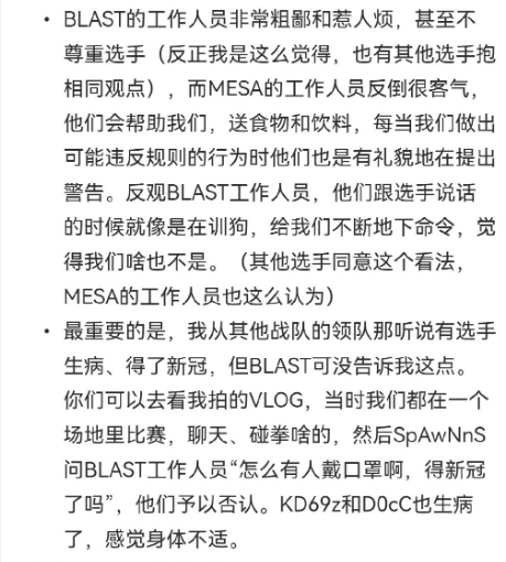 作为一款在全球范围内都有着强大影响力的游戏,与CSGO相关的电竞赛已经举办了很多年。由于CSGO 2即将上线,所以本届的巴黎Major也成了最后一届CSGO Major。为了选拔Major参赛队伍的亚洲区RMR预选赛,不久前刚刚结束。可是在网上,目前依然充斥着各种争议。 亚洲区RMR预选赛的参赛选手及网友们,如今仍在质疑主办方Mesa的专业性。因为这个在推特上介绍自己从2003年就开始组织承办电竞赛事的组织,给全球观众留下的印象都太过深刻了。 近期,作为亚洲区RMR预选赛参赛选手的知名主播Lobanjica,就发布了长文分享了此次蒙古之行的见闻。而部分内容因为太匪夷所思,甚至会给人以一种在写段子的感觉。Lobanjica在文中透露: 1.MESA的工作人员都是志愿者,没有薪水和酬劳。 2.台上的电脑在比赛期间处于联网状态,选手们可以将其当成个人电脑做任何操作。 3.一位战队的教练在赛事期间没有电脑可用。 4.主办方为了他们的安全,专门为安排了一个保安。可在保安到位的前一天,就有粉丝径直来到了他们的房间要求合影。 5.每场比赛他们都顶着5%-10%的Loss打,选手在游戏中听不见闪光弹的声音、压不了枪。 6.训练设备有限,电脑是不同的战队轮流用的,每一次使用都需要重新调整配置设定。 除了上述问题,Lobanjica还提到了BLAST的部分工作人员的态度问题。譬如对待选手太过粗暴,对于选手安全问题似乎也不太关注。Lobanjica在长文中提到的问题还有很多,并强调这些内容都是自己的亲身经历,这由不得大家不关注。 实际上,早在上周就有相关的内容被爆料出来。如选手比赛期间的互联网访问权限、教练和选手暂停期间的互动交流等等,这些其实都存在影响游戏公平性的隐患。只不过从参赛选手嘴里透露的内容,会让人觉得更加真实可信。 不仅如此,比赛期间主办方所表现出来的准备不足,也让蒙古当地的网友都发出了质疑声。他们认为Blast以一种近乎于外包的方式,将亚洲区RMR预选赛交给MESA,影响到了比赛的观赏性。 这起事件当前仍在发酵,但V社尚未作出回应,但不管怎么说,玩家和观众们对于CSGO电竞赛事,都是抱有期许的。最终还是希望即将到来的巴黎Major,能够让每个CSGO玩家都不留遗憾吧。 |