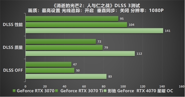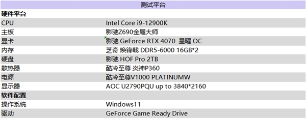 在2023年4月12日,NVIDIA 正式发布并解禁 GeForce RTX 4070。随之更大AIC 也陆续发出GeForce RTX 40 系列 GPU。全新的Ada 架构以及NVIDIA DLSS 3技术的上线都依旧是此次发布的看点。配合强悍的架构和技术,玩家们将可以通过GeForce RTX 4070 显卡畅玩 2K分辨率下的3A 游戏大作。此次,影驰为玩家和创作者们带来的是影驰 GeForce RTX 4070 星曜 OC 以及影驰 GeForce RTX 4070 金属大师 OC,在解禁的同时也将同步在京东上正式发售。影驰 GeForce RTX 4070 星曜 OC 的定价为5299元,以及影驰 GeForce RTX 4070 金属大师 OC 的定价为4799元。为了让游戏玩家和创作者们更直观的了解到GeForce RTX 4070 的性能,接下来将使用影驰 GeForce RTX 4070 星曜 OC 来为玩家进行产品开箱、产品拆解、产品规格和性能测试。考虑入手的玩家和创作者们可以通过评测数据,进一步进行了解参考做出选择,挑选自己心意的显卡。 现已有超过400款游戏和应用支持RTX,其中包括超过50款游戏宣布支持DLSS 3! DLSS 3是迄今为止NVIDIA所有技术中采用速度最快的技术之一,DLSS 3的采用速度是DLSS 2的7倍。DLSS 3现已应用于最热门的已发布和即将发布的游戏中,包括《极限竞速:地平线5》、《暗黑破坏神IV》、《红霞岛》和The Finals。RTX 4070带来终极游戏体验,对于创作者来说,它还将通过光线追踪和神经网络渲染将创意项目变为现实。 首先来看一下影驰 GeForce RTX 4070 星曜 OC 的规格参数: 产品开箱 影驰 GeForce RTX 4070 星曜 OC 灯光效果全新升级,内置5V ARGB接口,支持与主板连接,与各大品牌主板实现光效一体联动。搭载全新“负能量”检测系统,不同状态下呈现出不同灯效。即在开机显卡若闪烁黄灯,表示显卡外界供电异常;开机显卡若闪烁红灯,则表示主板供电异常,玩家排障更加直观简单。同时影驰 RTX 40系列显卡 星曜系列 还配有专属ARGB支撑架,采用与显卡一致的钻石切割设计,同样支持5V ARGB炫彩光效,并可自由调节高度。 产品拆解 在开始性能测试之前先来看看影驰 GeForce RTX 4070 星曜 OC 的内部结构。 影驰 GeForce RTX 4070 星曜 OC 采用RTX 40 系列独有的全新一代NVIDIA Ada Lovelace 架构,核心处理器型号为AD104-250/251。通过TSMC 4N定制工艺,实现高达2倍的性能功耗比飞跃,ADA架构旗舰显卡为玩家和创作者们在性能、AI 驱动图形领域以及其他领先的平台功能上实现质的飞跃。搭载第三代 RT Core 和第四代 Tensor Core,以及全新黑科技NVIDIA DLSS 3技术。借助 GeForce RTX 40 系列和第三代 RT Core 的强劲性能,在最大程度上释放光线追踪技术的强悍魅力,可模拟出真实世界中的光线特性,让玩家们在游戏世界里获得切身进入虚拟的极致视觉体验。而第四代Tensor Cores 则是可将吞吐量提升 4 倍,达到1.4 Tensor-petaFLOPS,AI性能最高提升至2倍。配合光流加速器提供动力支持,为NVIDIA DLSS 3技术 创造出大幅度提升性能,利用 AI 创造更多高质量帧的能力。 影驰 GeForce RTX 4070 星曜 OC 采用了6颗显存位宽为192-bit 的GDDR6X,单颗容量为2 GB,共给玩家们提供了12GB的超大显存容量。这为玩家们和创作者们都带来了充分且优秀的性能体验,可得极速渲染。显存频率高达21Gbps,让影驰 GeForce RTX 4070 星曜 OC 即便是面对着各种复杂和极端的运行加载需求,生产力MAX。 电源接口采用符合ATX3.0 / PCI-E 5.0 供电规范的12VHPWR 接口,单口供电能力可达600W。搭配8层高规格PCB,电气性能更加优异。11相豪华供电,是超越公版的配置。即保证影驰 GeForce RTX 4070 星曜 OC 在满载的情况下,仍然能够拥有持续稳定的性能输出,使其优异的性能能够持续发挥。 影驰 GeForce RTX 4070 星曜 OC 遵循了星曜系列一贯的纯白美学,显卡主体采用纯白设计,一体压铸的金属背板配合镂空设计,保障显卡的散热性能。正面采用白色喷涂搭配丝印工艺,提升显卡整体的质感。即便是纯白设计也不乏设计视觉体验。经典的钻石切割设计透明外壳,带来水晶般的透明质地。搭配拆卸的透明上盖,支持玩家们个性DIY设计,秉承星曜系列一贯的“一卡千面”,让玩家拥有属于自己独一无二的显卡。值得一提的是,星曜系列显卡支持拆卸DIY且不影响售后质保,只要出现质量问题且并非人为损坏都可以享受官方的售后服务。 顶部设计有信仰LOGO灯,营造出千层镜光效,如千重镜面,带来全新的光影美学。搭配三个透明ARGB扇叶,酷炫兼具未来科技感。支持ARGB同步线连接设置,与四大板厂实现灯效同步操作,电竞氛围感全线拉满。3个20mm厚,直径102mm的高规格静霜风扇,可实现更强风压更大风量,并且支持智能启停,为超频预留更多余量,也给与玩家们更加安静的游戏空间。 影驰 GeForce RTX 4070 星曜 OC 采用全新一代星卓 III 散热系统,除了3个高规格静霜风扇,还配备着5*Φ6mm镀镍复合热管,加强抗氧化的能力。大面积的高效均热板和鳍片,以及结合回流焊接工艺,给玩家们带来更加强悍的散热性能。散热系统和全金属背板的结合,让影驰 GeForce RTX 4070 星曜 OC的散热性能拉满。 影驰 GeForce RTX 4070 星曜 OC 配备全数字显示接口,支持4屏显示。升级拥有 HDMI 2.1 接口、支持动态 HDR、支持游戏模式动态刷新率等等。DP1.4a*3 最高可以做到完美支持8K画面输出。不论是追求高画质的3A游戏大作的玩家们,亦或者是对于视频创作拥有需求的创作者们,影驰 GeForce RTX 4070 星曜 OC 都能满足你的需求。 影驰的RTX 40 系列产品还加入了影驰显卡专属调控软件——影驰 XTRME TUNER 新世代?新魔盘,支持OC、灯效调整,支