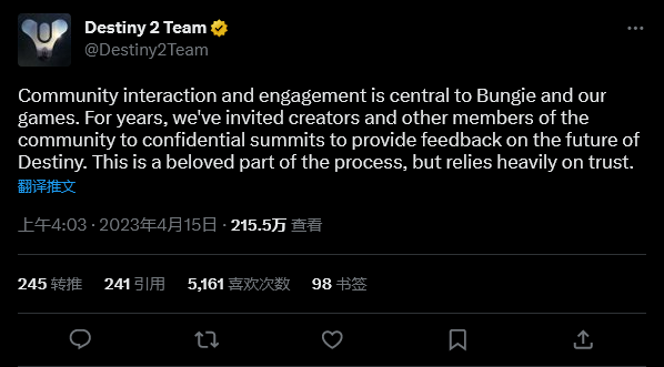 《命运2》未来内容泄露 Bungie:背叛信任感到伤心