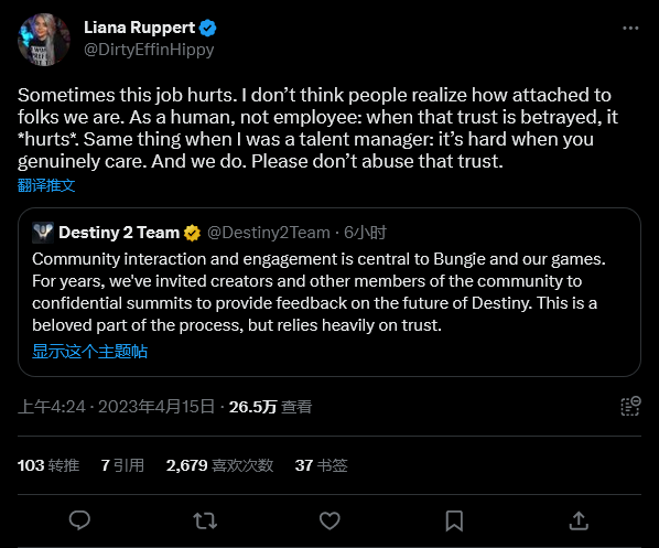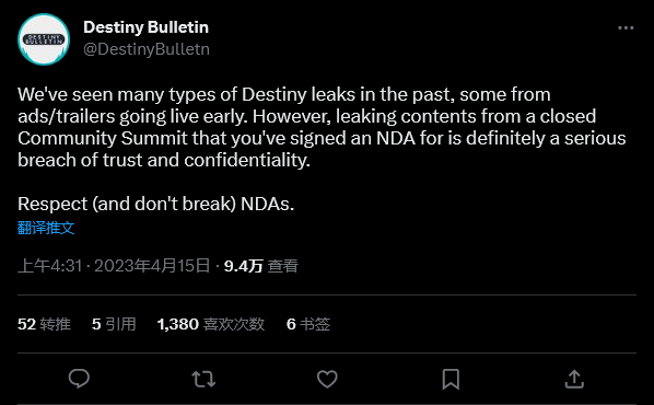 在即将发布的《命运2》第 21 赛季的大量内容被提前泄露后,Bungie 表示它正在“采取行动执行我们的政策”,翻译一下,工作室将对签署了保密协议的某个人进行处罚。 在推特上,《命运2》开发团队官方账号说道:“社区互动和参与是 Bungie 和我们游戏的核心。多年来,我们一直邀请创作者和社区的其他成员参加保密会议,就《命运》的未来提供反馈。这是开发过程中备受喜爱的部分,但很大程度上仅依赖于信任。” 团队总结道:“背叛这种信任可能导致我们无法继举行更多的讨论会。我们非常重视这些违规行为,并正在采取行动执行我们与受邀参与这些内部会议的人同意的政策协议。” Bungie 社区经理 Liana Ruppert 转发了团队的推文,并补充道:“有时这份工作会让人受伤。我认为人们没有意识到我们与他们之间的关系有多紧密。并非作为一个员工,而是作为一个普通人:当这种信任被背叛时,让我感到非常伤心。当我担任人才管理时也是如此:当你真的关心与自己共事的人时,这非常好困难。而我们确实真心在乎你们。因此请不要滥用这种信任。” 甚至《命运》内容已知泄露者 Bulletin 对于此次内部消息泄露也是敬谢不敏:“从你签署了保密协议的封闭社区讨论会中泄露内容绝对是严重违反信任和保密的行为。” 目前此次泄露的确切来源还没有被确定,或是官方已经知道但没有点名。从官方的话语看,很快有人就会收到律师函。目前在社交媒体上发布的一些图片看起来时 Bungie 内部演示中拍摄的。 |