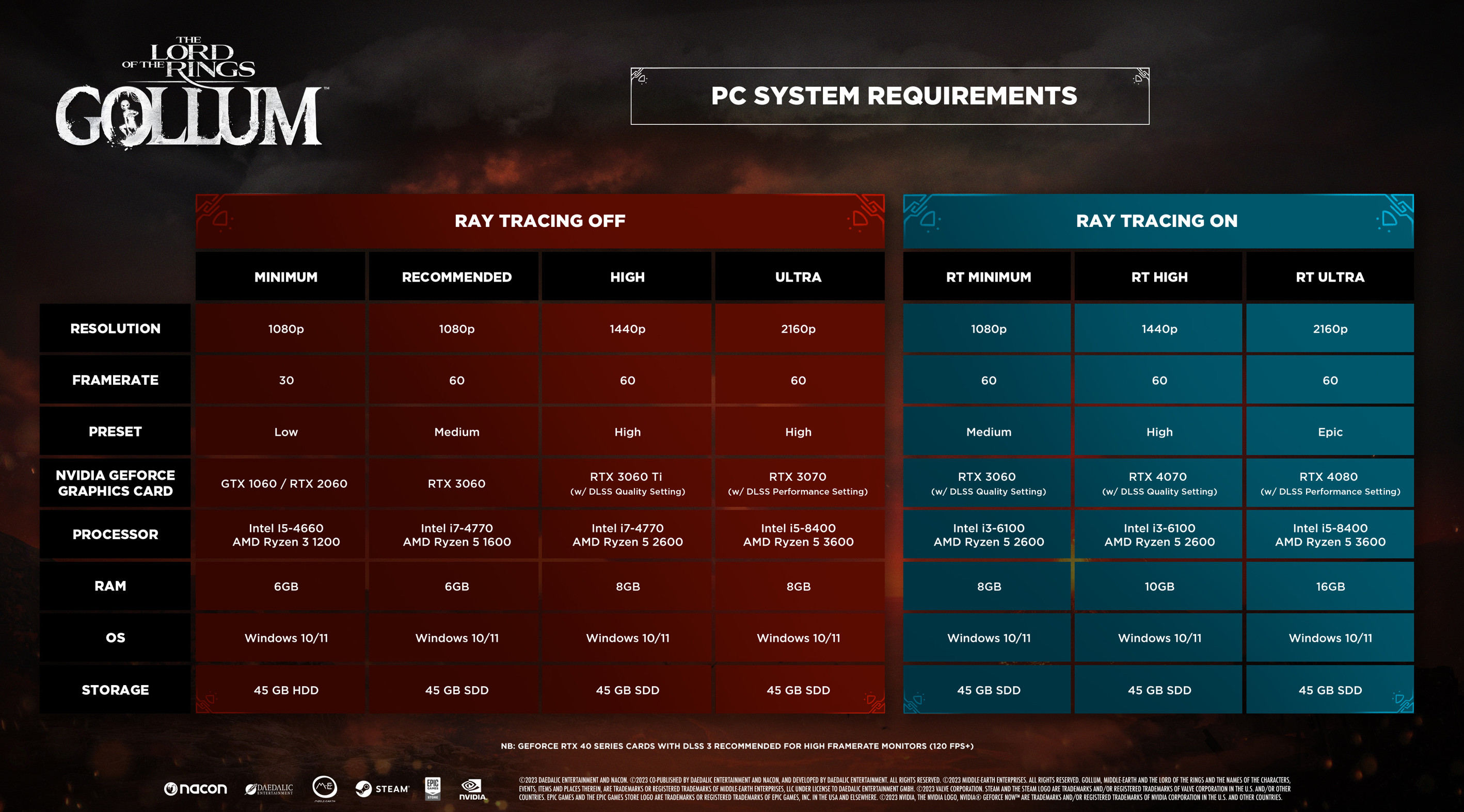 《魔戒:咕噜》首发支持DLSS3 光追配置和预告公开