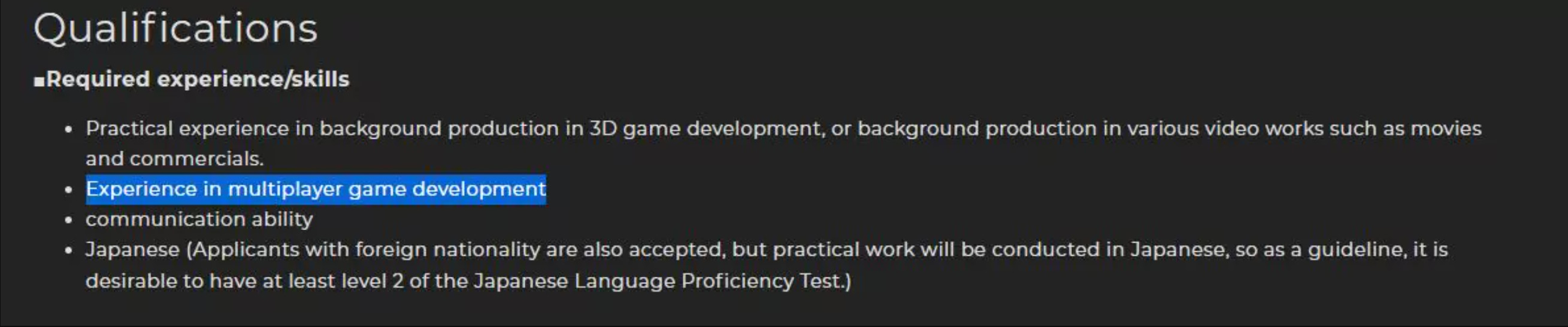 Tango Gameworks目前是Xbox游戏部门最重要的游戏工作室之一,该工作室通过《完美音浪》《幽灵线:东京》为微软品牌打上了烙印。现在有传闻称Tango Gameworks的下一个游戏可能有多人元素。 今年2月份时,B社确认了Tango Gamworks创始人三上真司即将离开的消息。看起来Tango Gameworks已经向前看,打算推出带有多人元素的新游戏。 在B社母公司ZeniMax日本官网上有一个招募环境设计师的职位广告,里面提到除了对3D游戏开发有实际工作经验外,还要求有“多人游戏开发经验”。此外,由于大部分实际工作将用日语进行,环境设计师也需要进行二级日语能力测试或来自日本。 当然,这对于Tango Gameworks来说并不奇怪,因为该公司自推出《幽灵线:东京》以来就一直远离恐怖游戏。凭借《完美音浪》,Tango Gameworks还打出了不怕冒险的创新名声。鉴于他们的新作将包含多人游戏元素,我们便有理由认为这将是一款即时服务游戏。 |