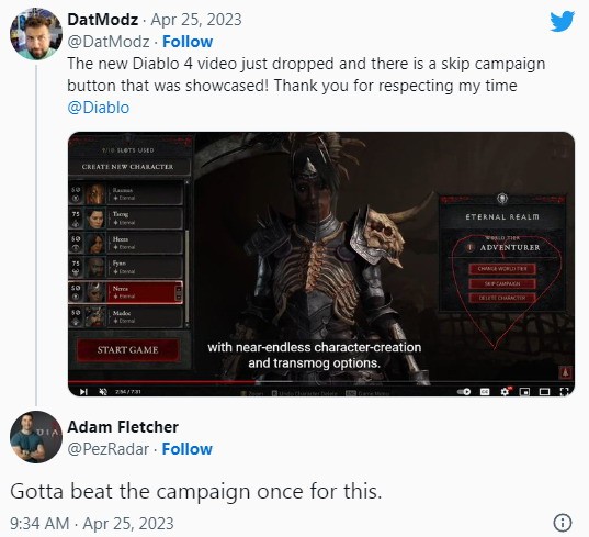 《暗黑破坏神4》让玩家能跳过战役 粉丝担心其可能是收费的