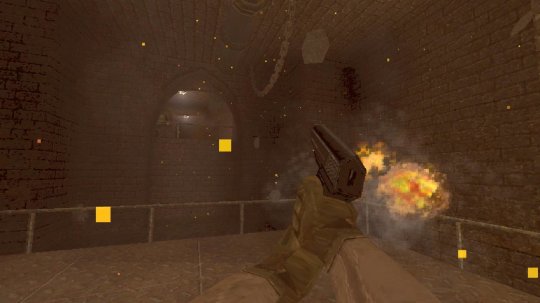·《HROT》的戏的玩法和气质借鉴了上世纪90年代中期的FPS大作《雷神之锤》(Quake)——从手感、关卡设计到色彩的选用(经典的“Quake Brown”屎黄色),都可以感受到作者向《雷神之锤》初代致敬的意味。