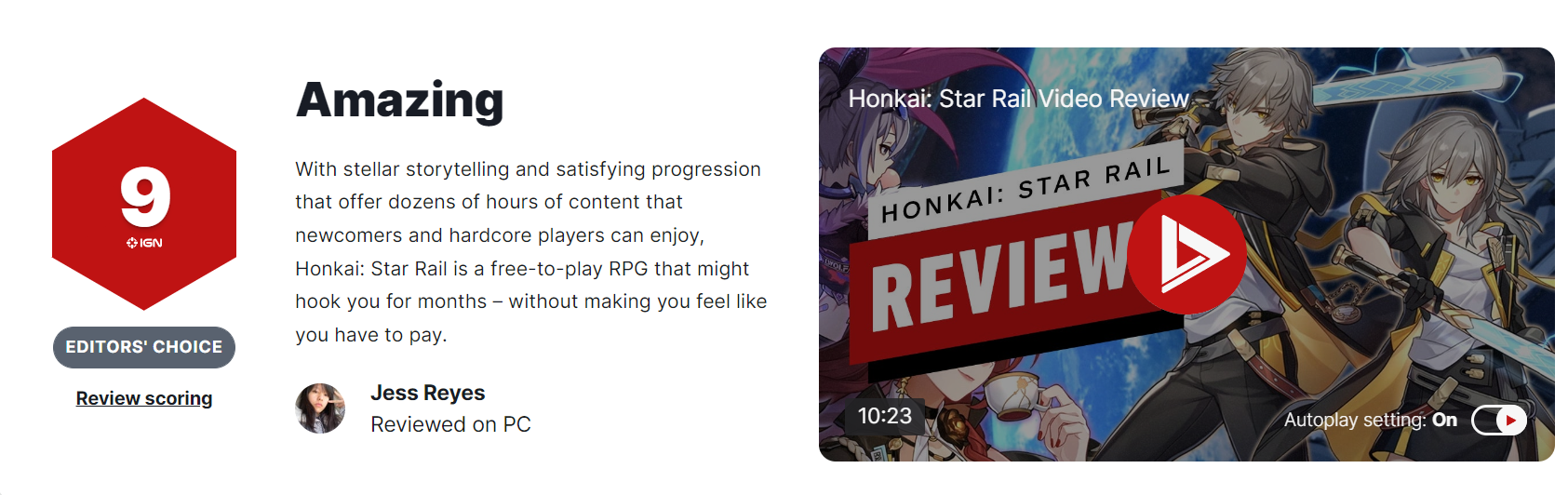 《崩坏:星穹铁道》IGN 9分:超越《原神》、让人着迷