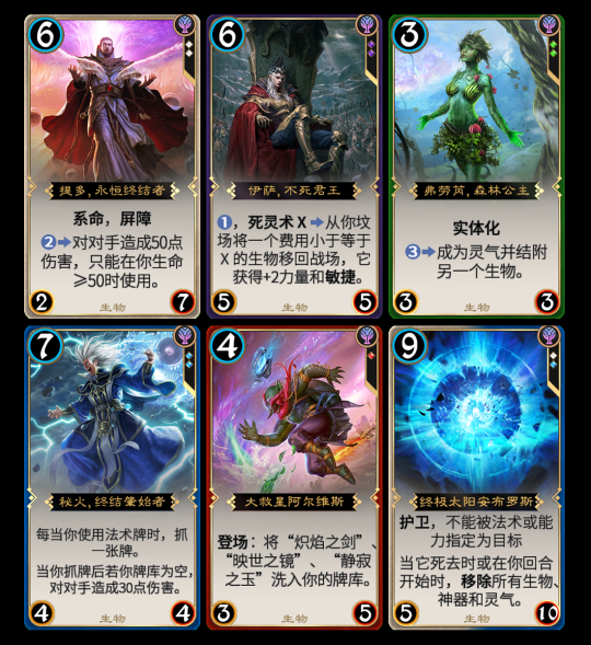 秘境对决全新版本《永恒的终结》已正式上线!本次更新带来140张全新的卡牌以及一系列新机制,为各位玩家带来更加丰富和多样化的游戏体验。 全新机制改变全局 本次更新带来了一系列新的机制,包括混色、灵气(化灵)、实体化、创造、死灵术、拦截、双重选择等,为牌组构建增添了更多可能性。例如从手牌施放具有双重选择的卡牌时,玩家可选择其中一项生效,或者是使用延迟战术,从延迟区施放时选择一项生效,并将另一项加入手牌··· 【140张新卡接踵而至】 在新版本中,140张卡牌更是迎来了全新的面貌! ·白色阵营迎来了大杀器提多,洁白源灵王雅飒曦也将降临战场,携始生源灵优雅而来; ·黑色阵营加入了在快棋中露过面的不死君王伊萨和永生巫后埃西,亡灵大军源源不绝; ·绿色阵营凭借着丰富的化灵效果加上灵气实体化的能力,展现了生命力生生不息的特质; ·蓝色阵营恰好抽空牌库能造成大量伤害、创造额外回合、变形全场生物···各种操作接连不断; ·红色阵营带来了众多的神器与造物,三神器之力、洛宁心脏,都将带来令人愉悦的体验; ·混色阵营更是具有两个不同的颜色点数,同时也具有两种颜色的特色,为卡组的构筑带来了更多的可能性。 【新版本活动,多重好礼等你来领!】 随着新版本到来,游戏中同步上线了新的预组套牌,让各位召唤师能更方便快速地上手版本卡组。同时一系列惊喜活动也如期到来,玩家完成七日签到、天梯每日首胜等活动即可获得新卡包、卡背等丰厚奖励,更有新的角色造型、称号、超值组合礼包等你体验! 【新版本世界观:永恒终焉,对决无尽】 在泰拉城破之后,风语林地被毁,生命之树结界终于被激活。 在结界内部,是创世神耶塞尔的领域——永恒时空。永恒时空乃是由五色法术源力汇聚而成五个截然不同的时空,环绕着生命之树本体。耶塞尔,就在其中沉睡。 面临铺天盖地而来的死亡之潮,炽翼教派领袖提多最终劝服守护者女王希芙丝,开启生命之树结界的通道。当人力已经无法挽回颓势,就只能寄望于神。 希芙丝牺牲了自己,开启通道。永恒时空亘古以来的宁静,被各怀心思的闯入者们打破。五色源灵王的引导是抵达生命之树的必要条件,而他们面对着从未遭遇的复杂形势,态度也各自迥异。 然而,当正义的联军历经艰险,终于抵达生命之树时。迎接他们的,却是世界的终结…… |