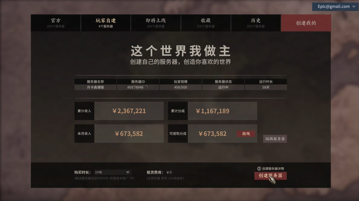 【创世计划】首批开发者名单即将公布!大家都参与了吗?阿亚已经迫不及待的想知道自己有没有上榜! 新栏目【创世情报局】正式启动,阿亚将会为大家带来创世计划的各种爆料,提前了解创世计划详细内容。 那么今天要介绍的是创世计划服务编辑器,主要内容包括但不限于界面UI、编辑功能等,跟着阿亚一起抢先“云”体验! 服务编辑器作为创世计划中不可或缺的组成部分,它将是大家实现自由定制的基础,在编辑器中大家可以根据自己的需求、喜好,通过拖拽和设置各种游戏元素,自由搭配,体验真正便捷舒适的开发创造。 玩家自建-畅快游玩 进入平台,映入眼帘的便是可供选择的各种功能,有官方服务器、玩家自建服务器、即将上线服务器、收藏、历史、以及创建我的服务器。 在玩家自建部分,我们可以看到其他玩家们创建的服务器,而且还会显示该服务器的基本数据,如战斗模式、所在地图、经验倍数,服务器所在地&延迟、玩家规模等。 除此之外,还能通过搜索服务器编号,寻找特定的服务器进行游玩。约上三五好友,前往同一服务器,开启愉快的游戏之旅吧! 自由创造-轻松便捷 作为开发者平台,大家最关心的肯定还是创造功能,在主界面点击创建我的,即可进入创建模式,开启你的创世之旅! 创造模式会根据不同的服务器性能,以及不同的服务器容量,设置不同的配置方案,一键配置合适的服务器,无需经历繁杂的设置流程,轻松创造! 除了轻松、简单,我们的服务器还具有稳定性,由官方统一进行日常维护工作,BUG无需担心! 点击创建服务器后,便体现了创世计划强大的后台,在后台可清晰看到服务器的名称、状态、运行时长等重要信息,还能查看服务器收入情况和可提取的超高分成比例,实时监控自己的小金库,做到边玩边赚钱,自己当老板! 在创建模式主界面,即可看到本平台的两大特点。 特点一:创造者可以创建自己喜爱的游戏,邀请自己的好友,推广更多人参与游玩; 特点二:创世编辑器,为创造者提供了超级强大便捷的工具,未来可以支持更多定制内容; 创世计划竟有着如此强大的服务编辑器,看得阿亚我都忍不住心动了!一起参与创世计划,打造出独一无二的游戏世界吧! |