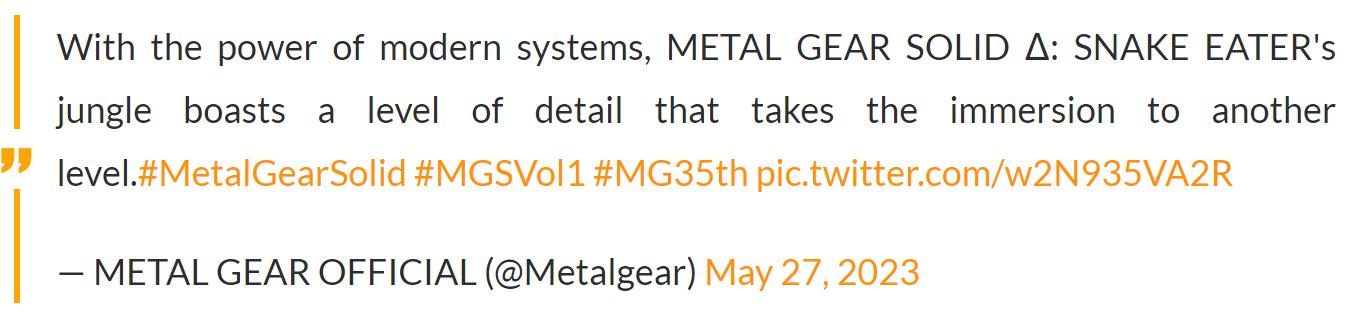 目前有关《合金装备3:重制版》的发售时间还没有公开,但据传闻,该作将于2024年发售。