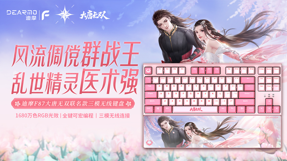 《大唐无双》作为网易第一热血群战网游,引得千千万万的网游大神共聚《大唐无双》重温大唐盛世。即日起,资深电竞游戏外设品牌-迪摩正式对外宣布,将与网易《大唐无双》达成战略合作,将为少侠们推迟多款《大唐无双》联名款键鼠外设。其中迪摩F87大唐无双联名款三模无线键盘/迪摩FPW大唐无双联名款三模无线鼠标,两款产品上市! 游戏外设的传播与发展,历来是游戏产业经济发展的重要一环,迪摩外设携手《大唐无双》,通过打造游戏周边联动形式,共同推进游戏产业发展,两者的强强联合更是共赢局面。大唐盛世,绝代无双,在游戏中网易为玩家奉上了十二个职业,分别是北辰宫、风华派、凌云寨、灵宿、少林、寒冰、无名、蜀山、天煞、百花蛊、侠隐岛、百花医。《大唐无双》是网易第一热血群战网游,以热血肆意的战斗厮杀和大型多人同屏战场为亮点。在游戏中,玩家不仅可以感受到快意恩仇的江湖世界,还可以参与各类趣味活动丰富游戏体验。《大唐无双》五月中旬更将推出全新活动——押镖瓜分百万福利金,超值福利任性放送,豪雨抢不停,想抢红包雨的朋友们也可以下载体验一下《大唐无双》官方网站——网易第一战斗网游 (163.com)~ 此次,迪摩以男无名和百花医女这两个热门角色,作为设计元素,结合迪摩外设的特点,通过先进的工艺,将人物活灵活现的应用到产品上。 迪摩F87大唐无双联名款三模无线键盘 风流倜傥战群王 乱世精灵医术强,诠释了男无名和百花医女的特点,迪摩巧妙的将大唐无双最唯美的两个角色融合在F87三模无线键盘上,键盘整体以粉色为主,采用2.4G/蓝牙5.0/有线三种连接模式,全键可通过驱动实现自定义功能,1680万色RGB灯效在角色主推的衬托下,键盘整体颜值瞬间提高不少。 迪摩FPW大唐无双联名款三模无线鼠标 国色朝酣酒,天香夜染衣。人在江湖漂,哪能不挨刀。为何百花医女是最受侠客欢迎的队友,只因为她所拥有的独门医生能让你活的更久。就如同迪摩FPW三模游戏鼠标一样,能让玩家拥有更丝滑的操作空间,是玩家的首选游戏鼠标。迪摩FPW大唐无双联名款三模无线鼠标,同样采用2.4G/蓝牙5.0/有线三种连接模式,78克轻量化设计,灵敏便捷。50小时长效续航,7键可宏定义,爆炸输出,磁吸式侧键设计,方便简捷,PMW-3335DB游戏芯片,精准追踪。 折扇洒脱,暗伏杀机,天下间能在百米开外就能杀敌于无形中,唯有无名;看似柔弱,却不容忽视,战场上能活多久,先看百花医女有多强。迪摩F87大唐无双联名款三模无线键盘/迪摩FPW大唐无双联名款三模无线鼠标以正式上市! |